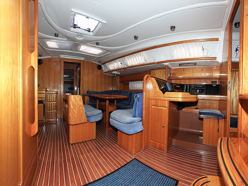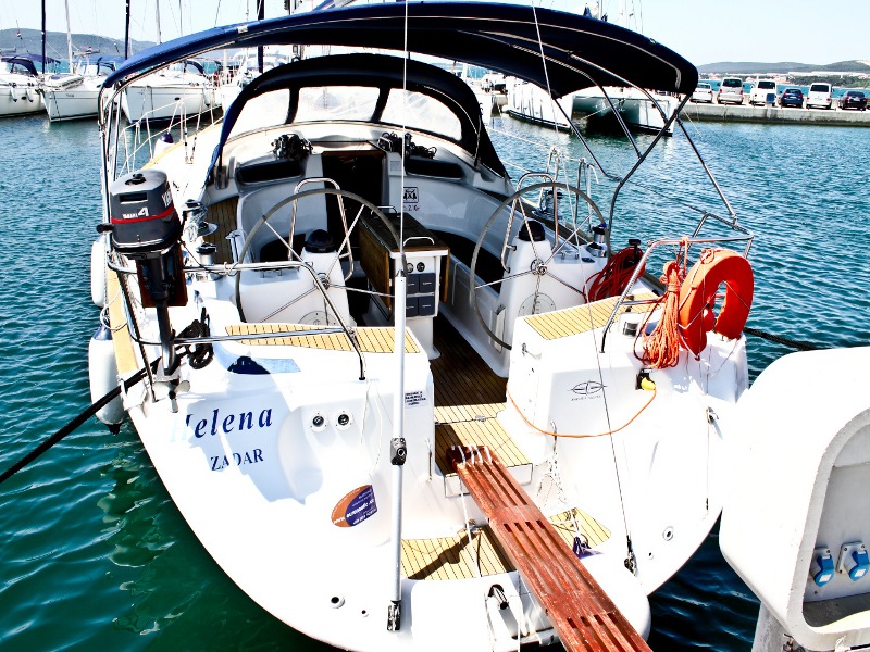 | Outside | 220 V-Landanschluss, Anker mit Kette, Biminitop, Bootshaken, Cockpitdusche, Cockpitlautsprecher, Cockpitpolster, Cockpittisch, elektr. Ankerwinsch, Fender, Festmacherleinen, Sprayhood, Teak im Cockpit, Windex |