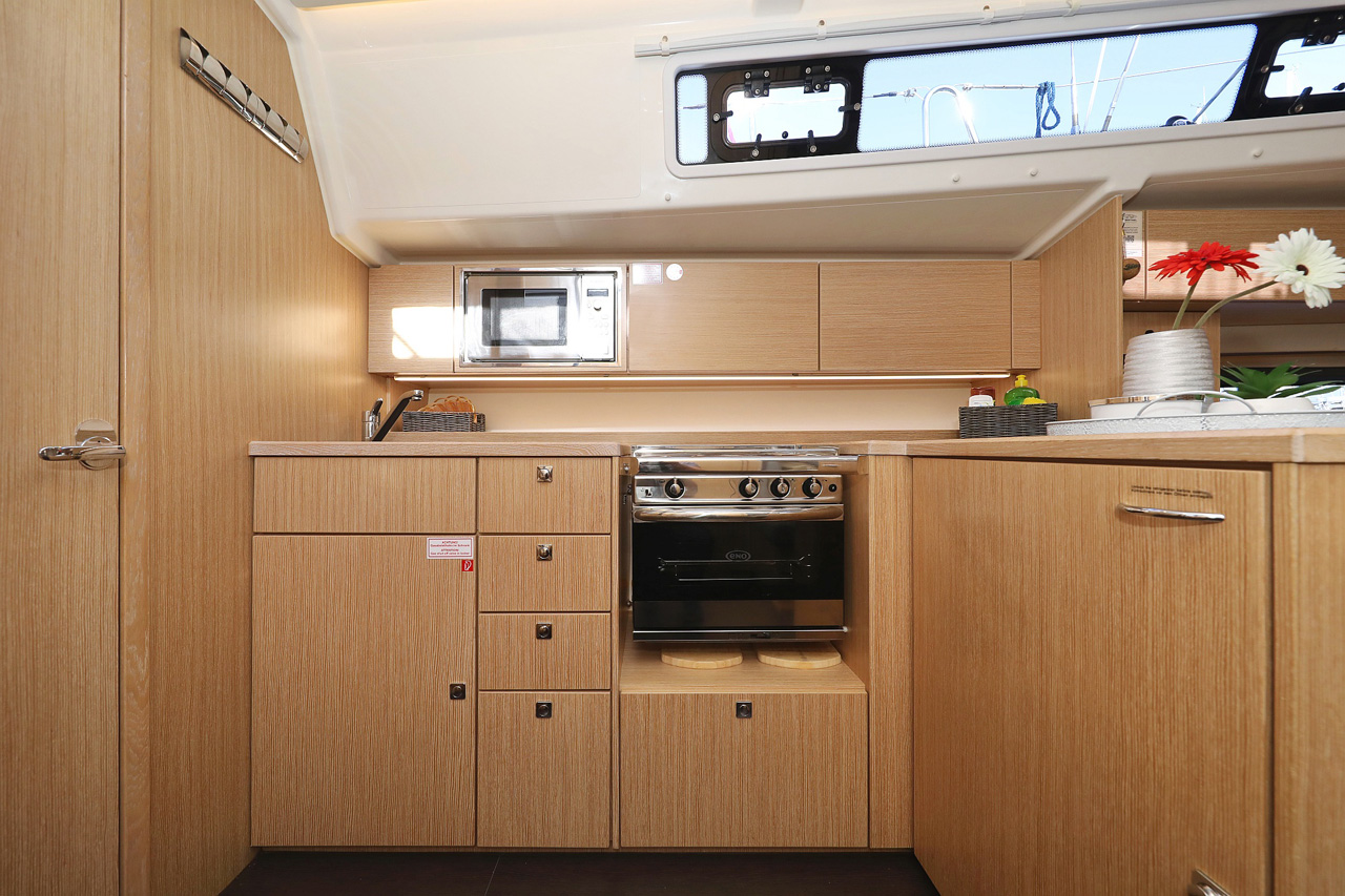 | Safety | Automatikwesten, Autopilot, Blitzboje, Bootsmannstuhl, Bordapotheke, Bordwerkzeug, Bugstrahlruder, Feuerlöscher, Lifebelts, Motor-Ersatzteile, Nebelhorn, Notsignale, Radarreflektor, Reparaturset für Beiboot, Rettungsinsel, Suchscheinwerfer, Taschenlampe, UKW-Funk mit AIS, Zweitanker |