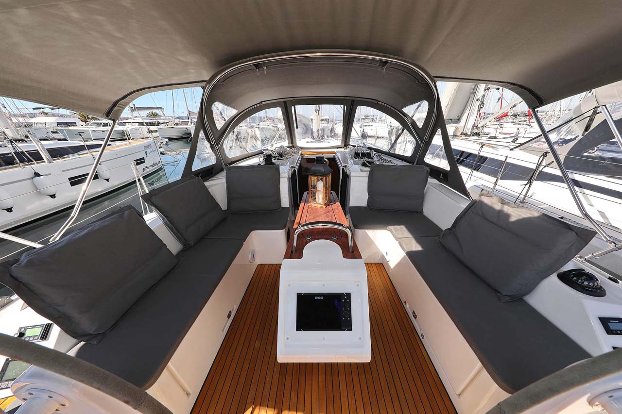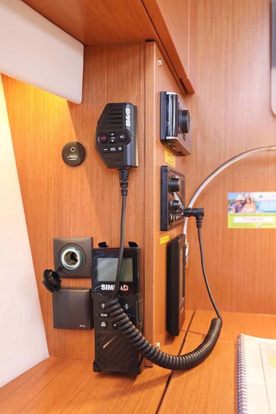 | Safety | Automatikwesten, Autopilot, Blitzboje, Bootsmannstuhl, Bordapotheke, Bordwerkzeug, Bugstrahlruder, Feuerlöscher, Lifebelts, Motor-Ersatzteile, Nebelhorn, Notsignale, Radarreflektor, Reparaturset für Beiboot, Rettungsinsel, Suchscheinwerfer, Taschenlampe, UKW-Funk mit AIS, Zweitanker |
