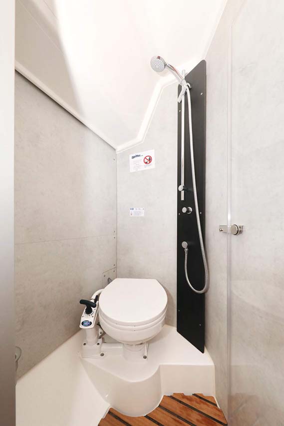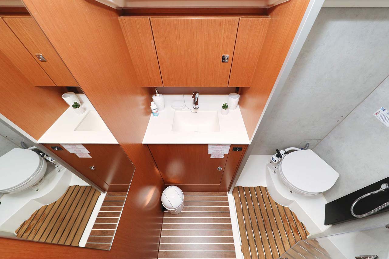 | Inside | 2. Kühlschrank, Borduhr, FUSION Sound System, Heizung, Inverter 12V/220V, Kühlschrank, Ladegerät, Luftpumpe für Beiboot, Pantryausstattung, Salontisch absenkbar, Warmwasser |