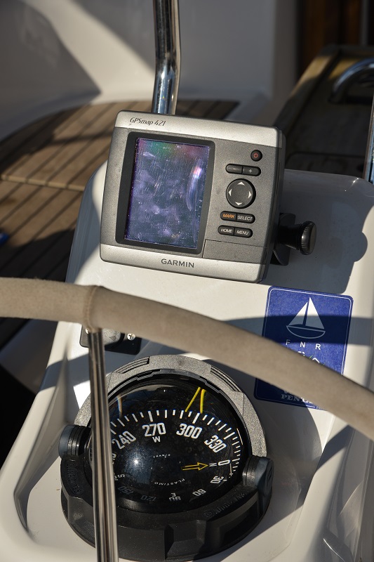 | Navigation | Fernglas, GPS mit Kartenplotter im Cockpit, Seekarten, Tridata (Log, Echolot, Windm.), Windmesser |