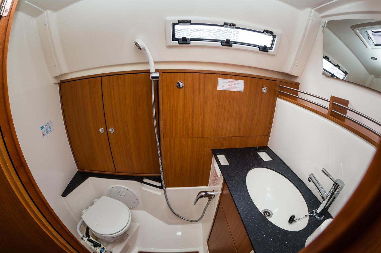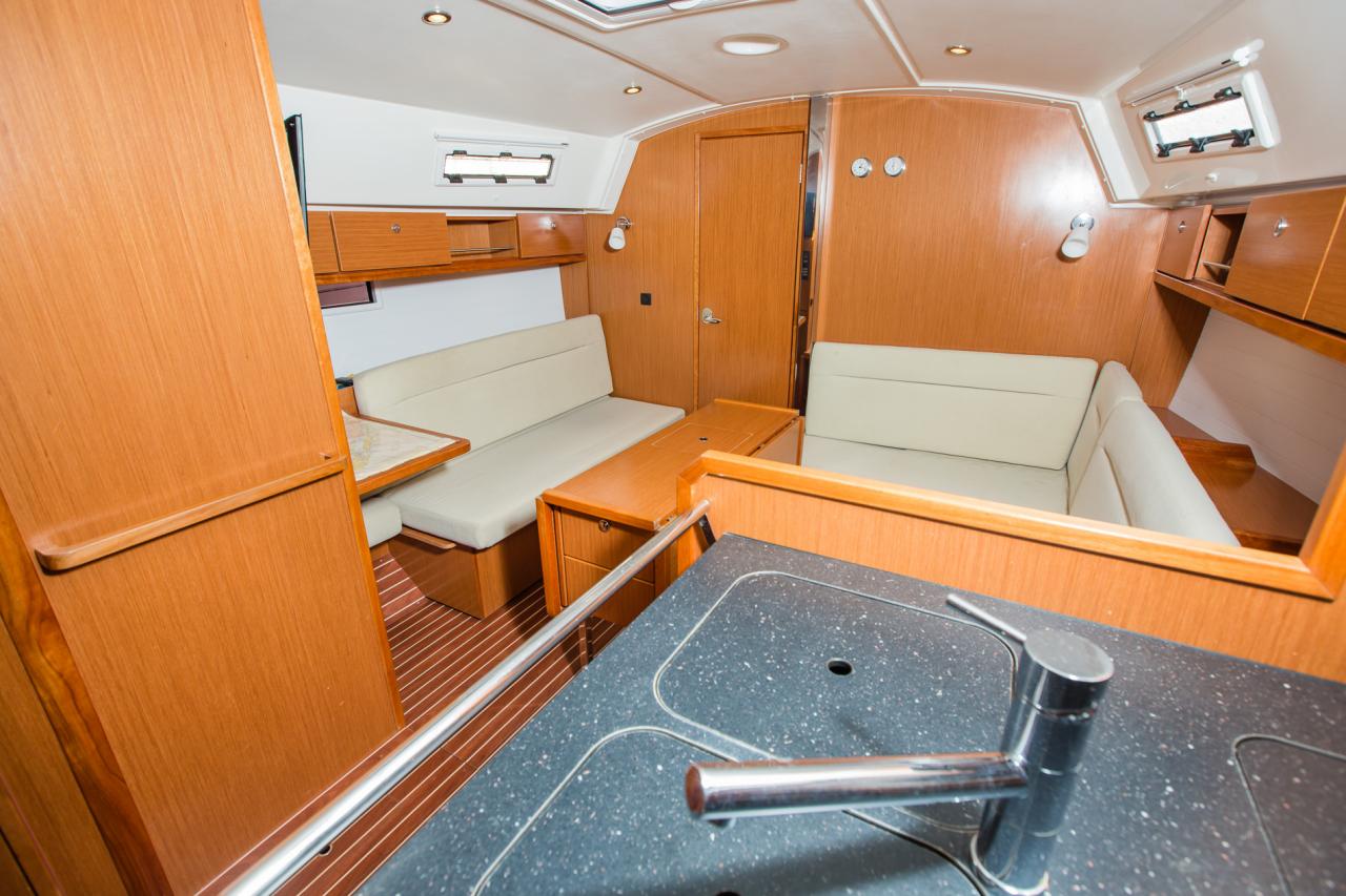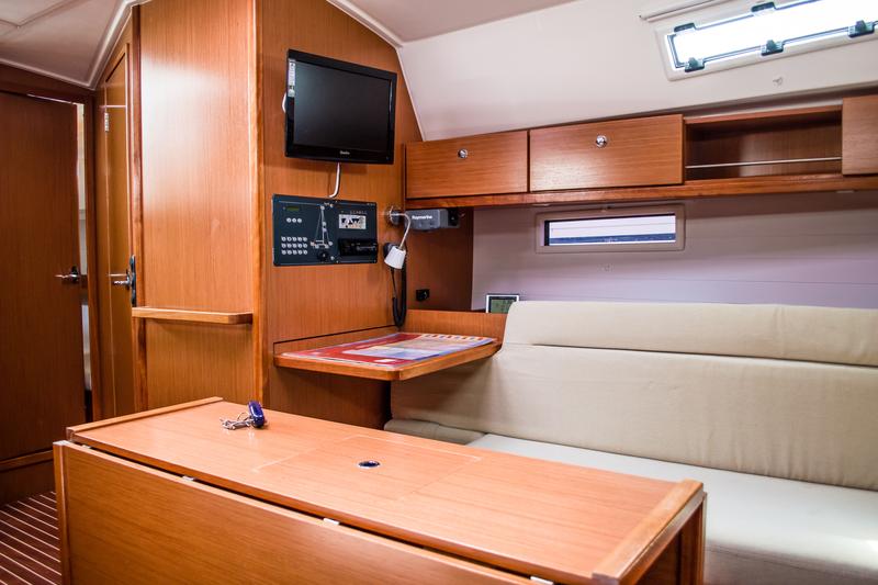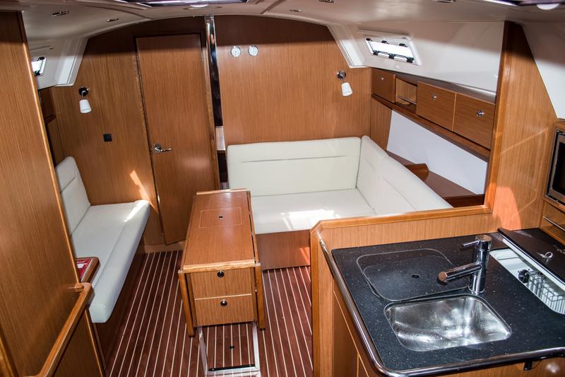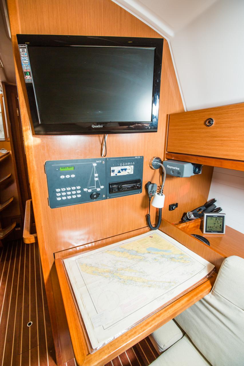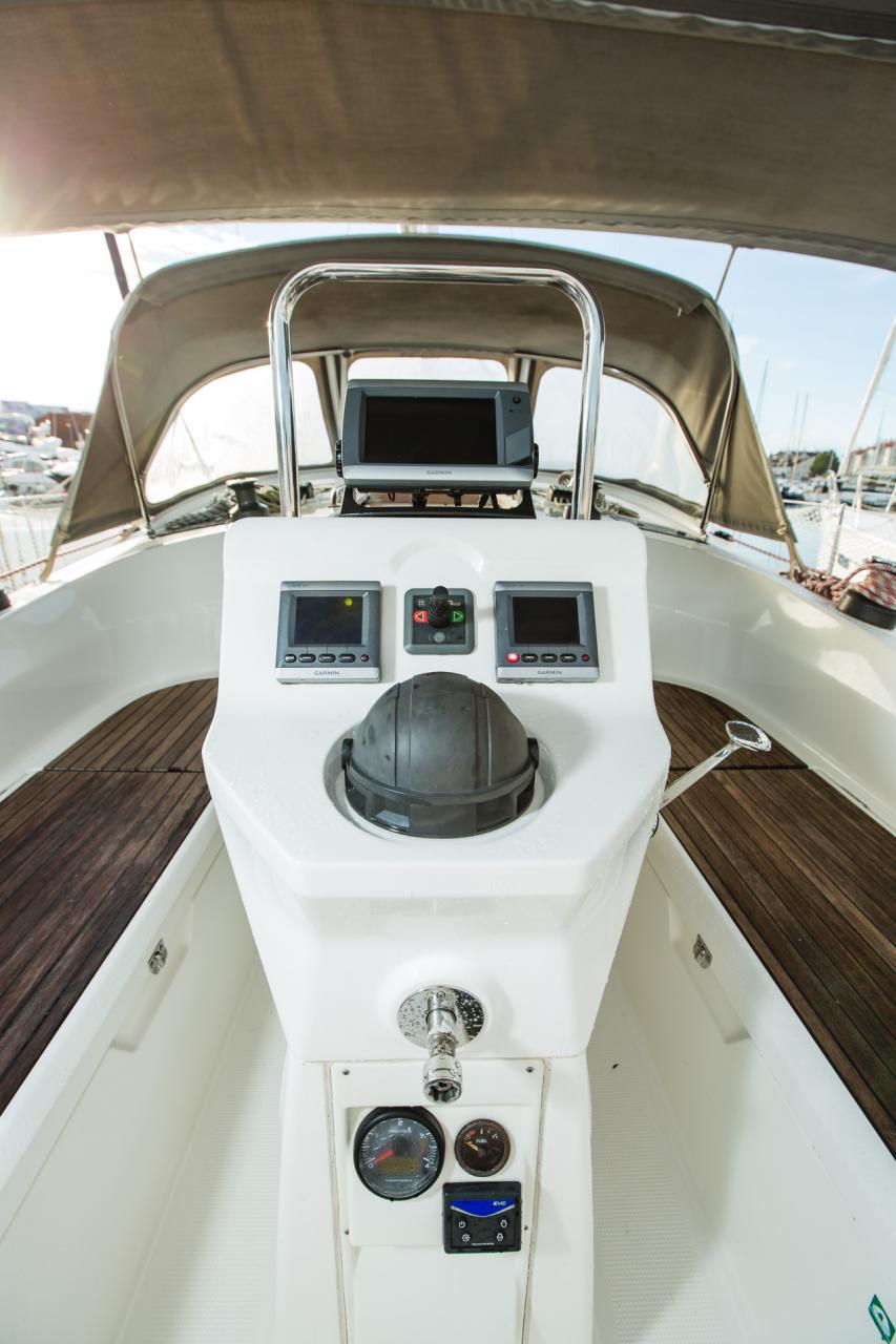 | Outside | Badeplattform, Biminitop, Cockpitdusche, Cockpitlautsprecher, Cockpittisch, elektr. Ankerwinsch, Sprayhood, Teak im Cockpit |