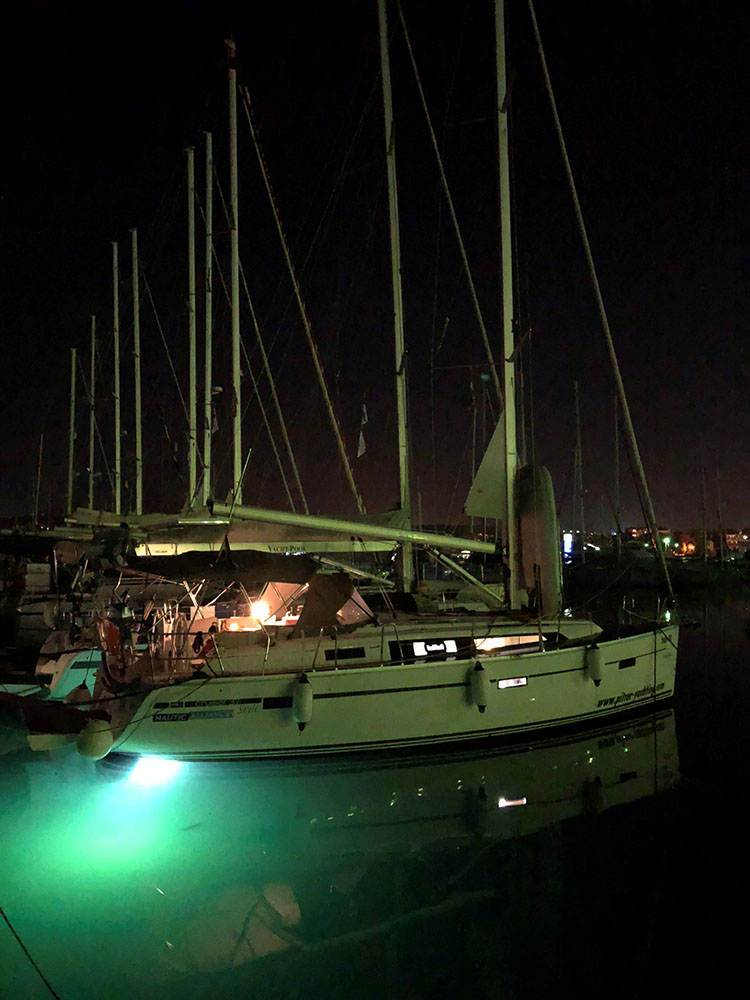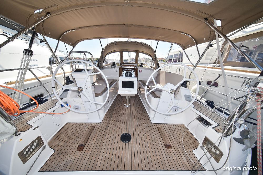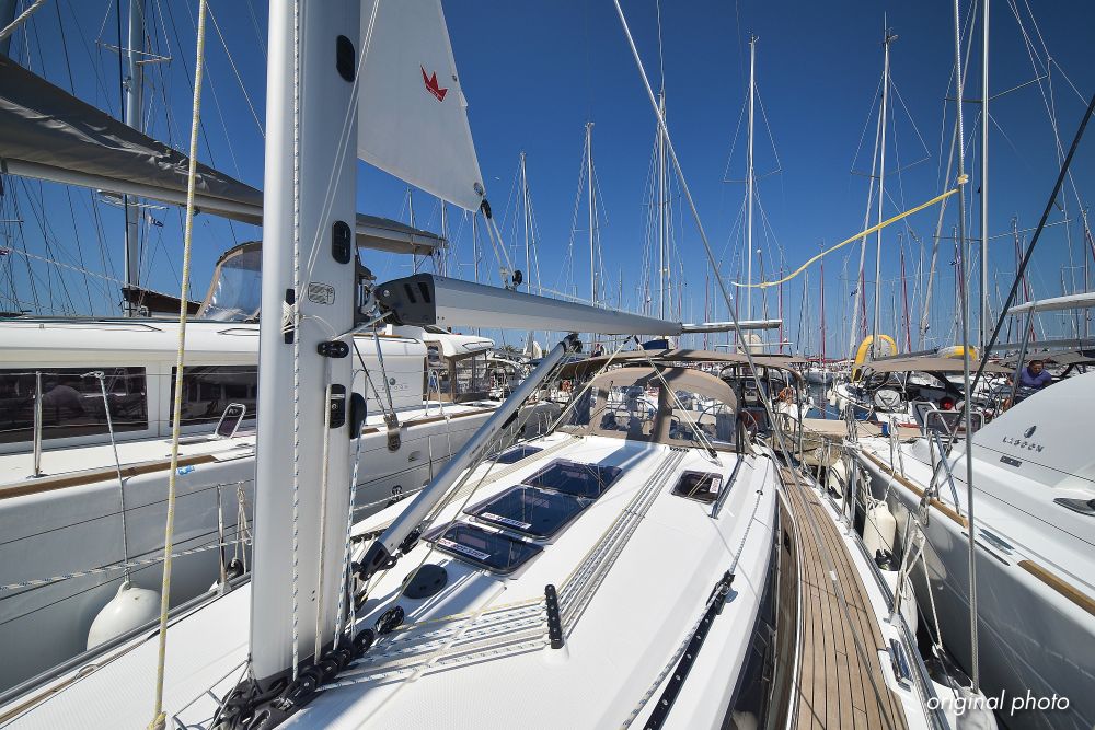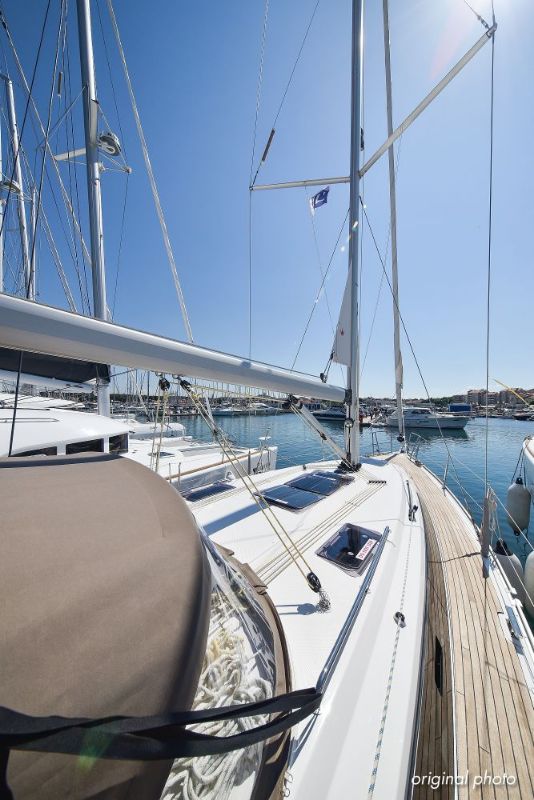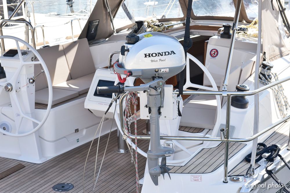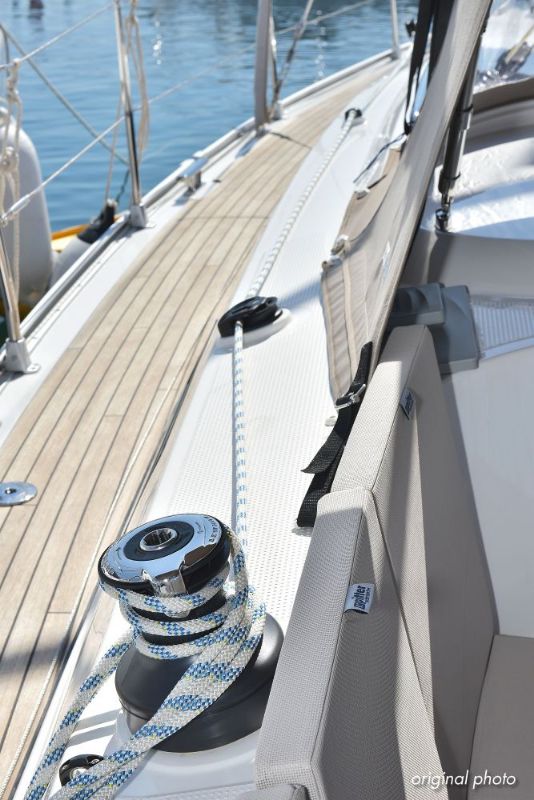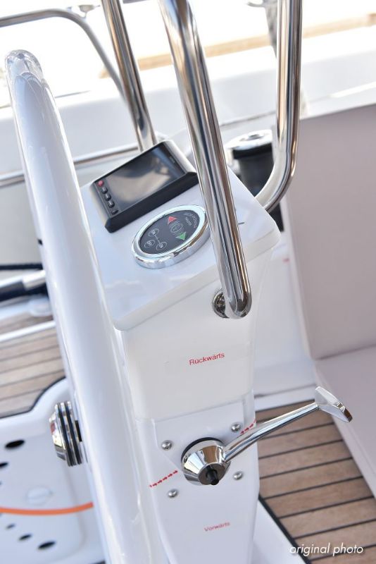 | Outside | 12 V-Anschluss, 220 V-Landanschluss, Anker mit Kette, Ankerwinsch, Badeplattform, Biminitop, Bootshaken, Cockpitdusche, Cockpitlautsprecher, Cockpitpolster, Cockpittisch, Dieselkanister , elektr. Ankerwinsch, Faltpropeller, Fender, Festmacherleinen, Gangway, Kugelfender, Kunststoff-Eimer (Pütz), Seereling, Solaranlage, Sprayhood, Teak auf Badeplattform, Teak im Cockpit, Teakdeck, Unterwasserbeleuchtung, Wantenschneider, Wasserkanister , Wasserschlauch |