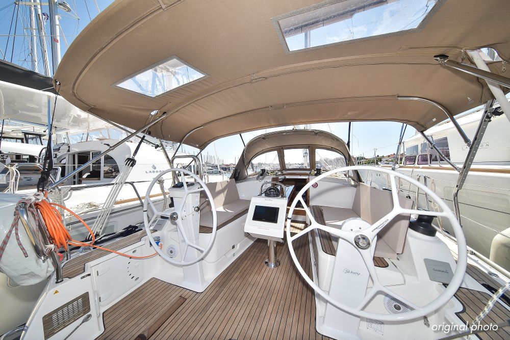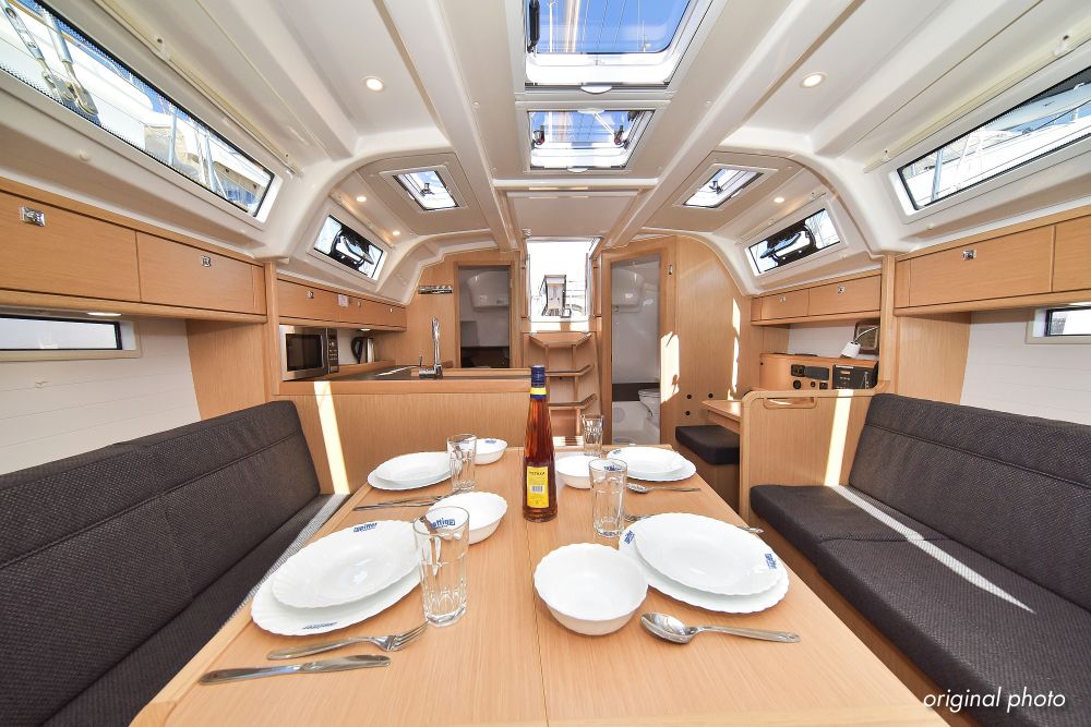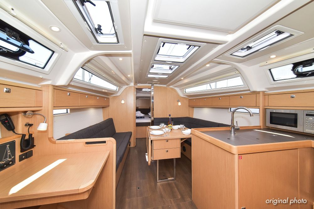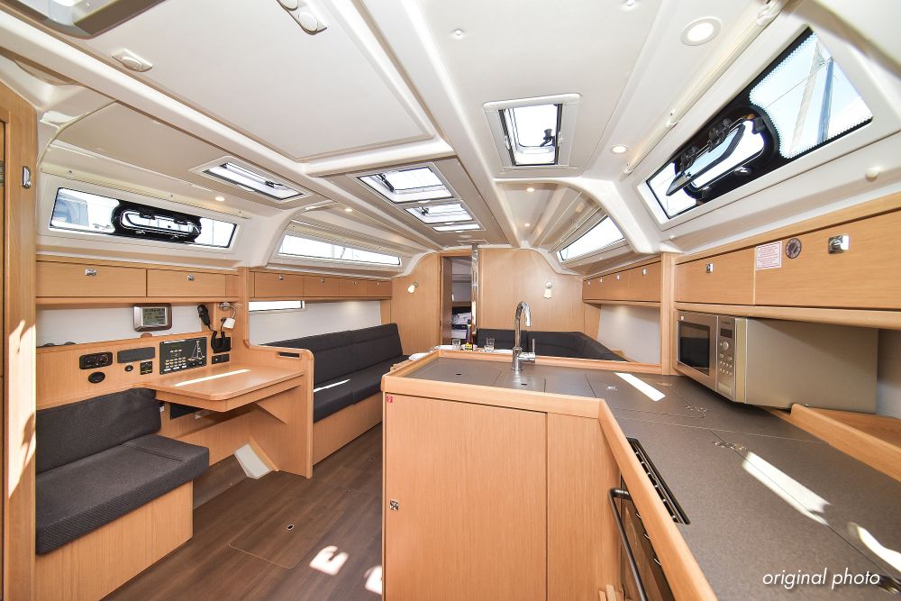 | Inside | Dusche, FUSION Sound System, Heizung, Inverter 12V/220V, Kühlschrank, Ladegerät, Luftpumpe für Beiboot, Mikrowelle, Pantryausstattung, Radio mit USB, Bluetooth und AUX-In, Toaster, USB Steckdosen in den Kabinen, Warmwasser, WC (elektr.) |