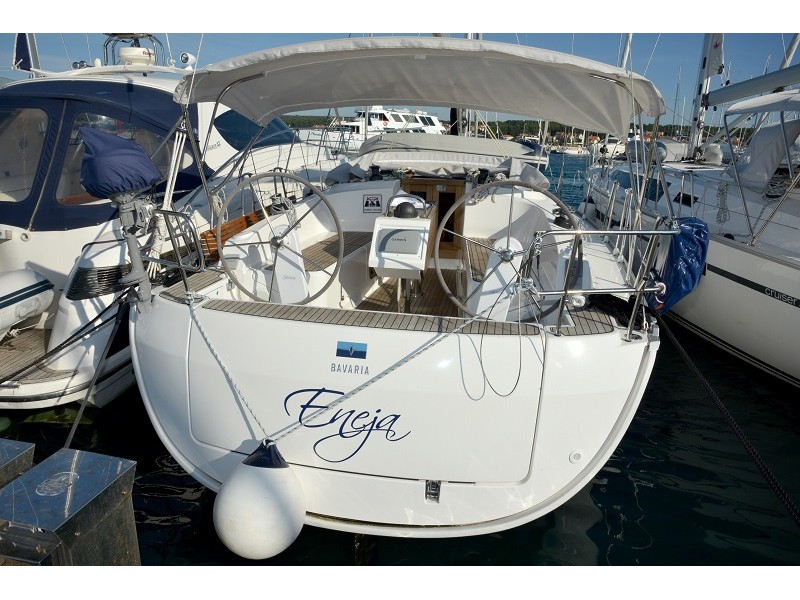 | Outside | 220 V-Landanschluss, Biminitop, Cockpitdusche, Cockpitlautsprecher, Cockpittisch, elektr. Ankerwinsch, Fender, Festmacherleinen, Sprayhood, Teak im Cockpit, Wantenschneider |