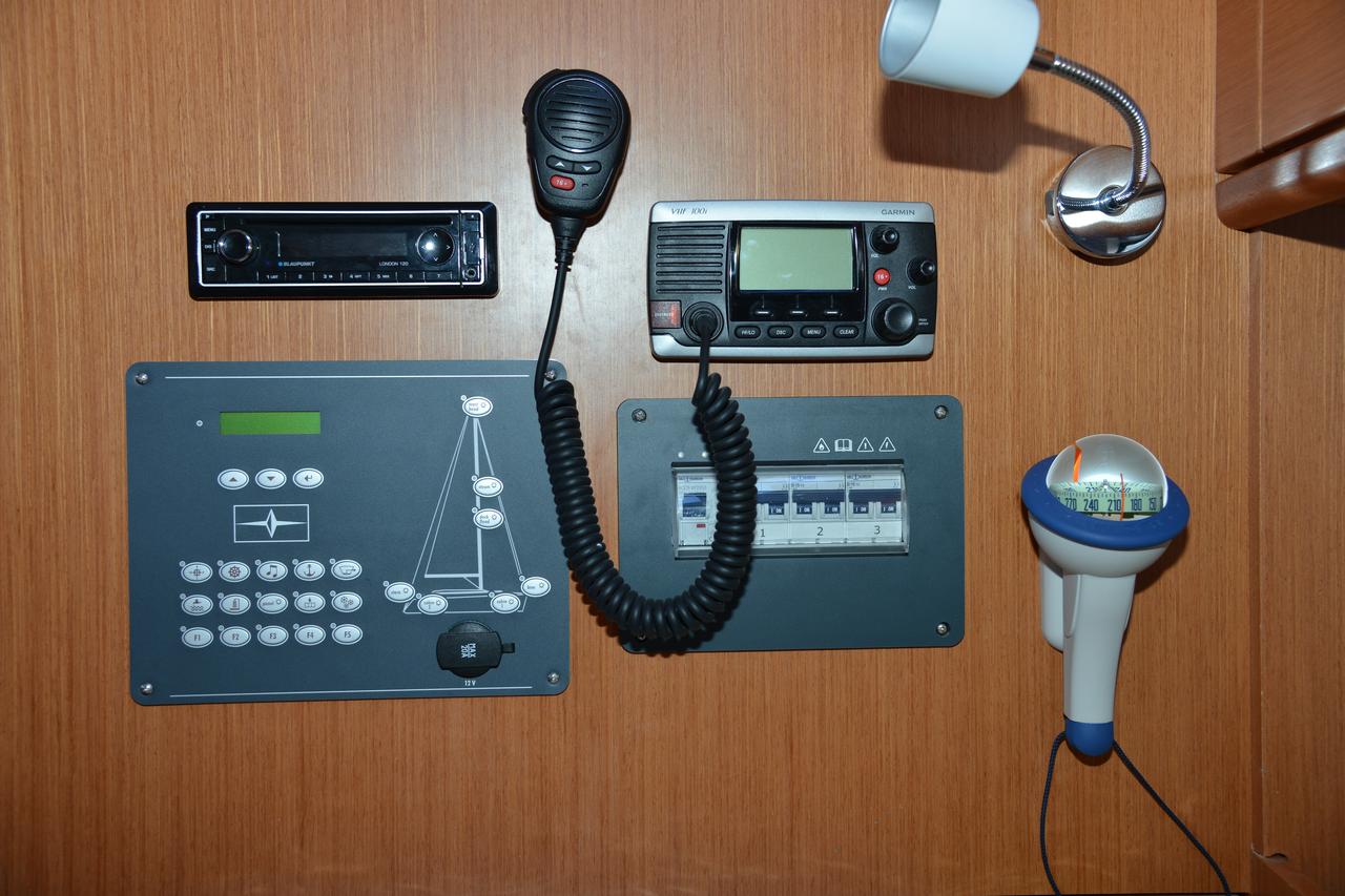 | Navigation | Fernglas, GPS mit Kartenplotter im Cockpit, Hafenhandbücher, Kompass, Seekarten, Tridata (Log, Echolot, Windm.), Windmesser |