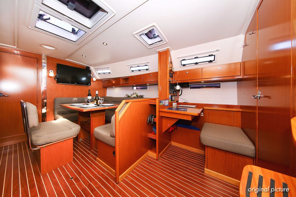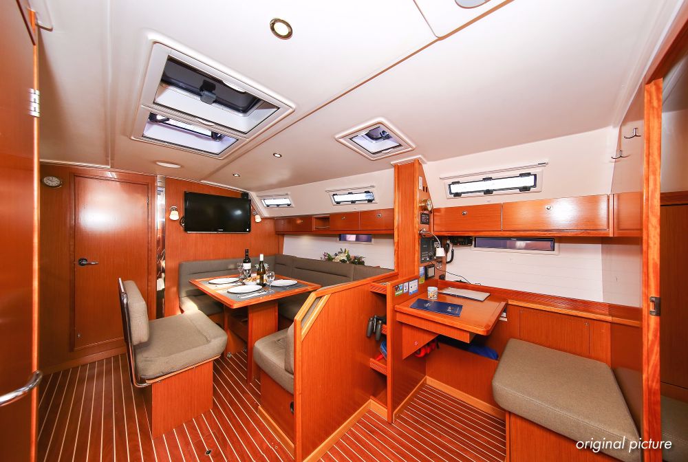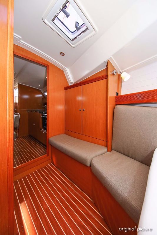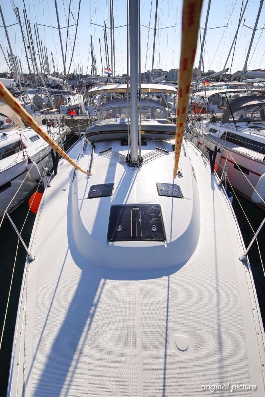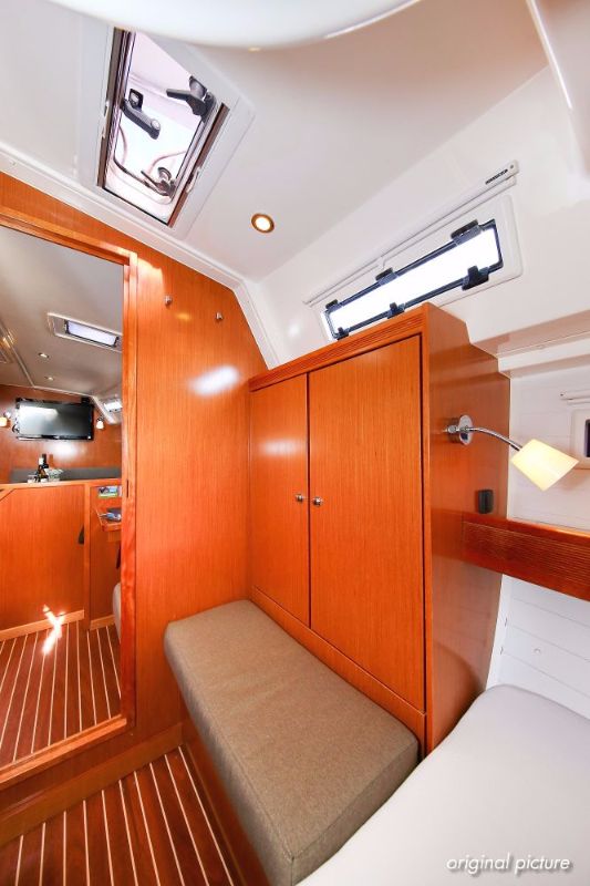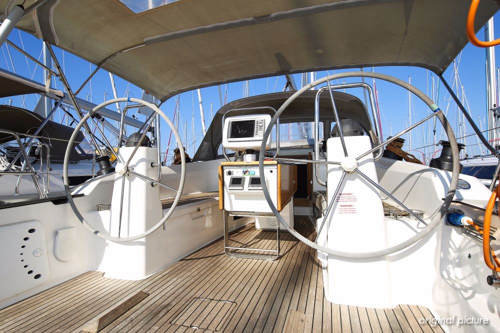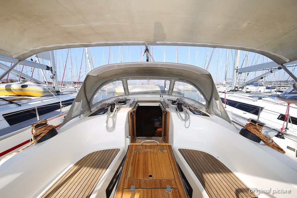 | Outside | Anker mit Kette, Ankerwinsch, Badeplattform, Biminitop, Bootshaken, Cockpitdusche, Cockpitlautsprecher, Cockpitpolster, Cockpittisch, Dieselkanister , elektr. Ankerwinsch, Fender, Festmacherleinen, Gangway, Kugelfender, Kunststoff-Eimer (Pütz), Solaranlage, Sprayhood, Teak im Cockpit, Wantenschneider, Wasserkanister , Wasserschlauch, Windex |