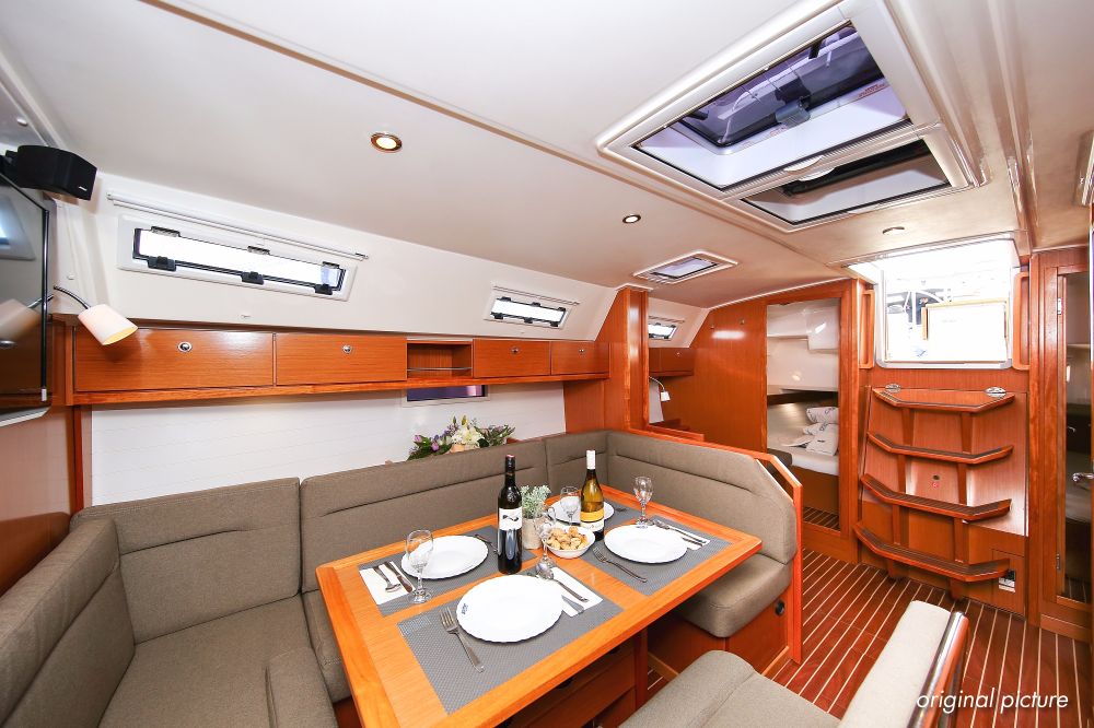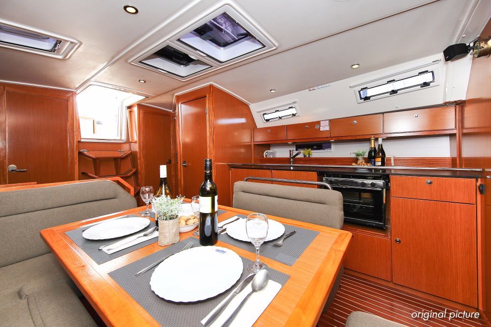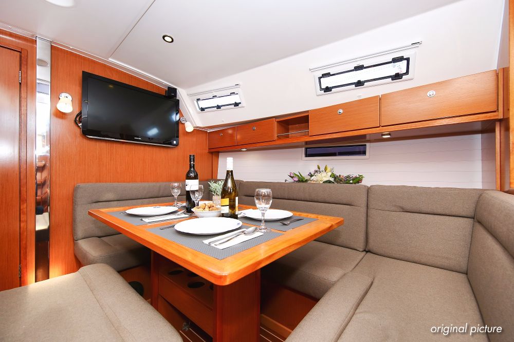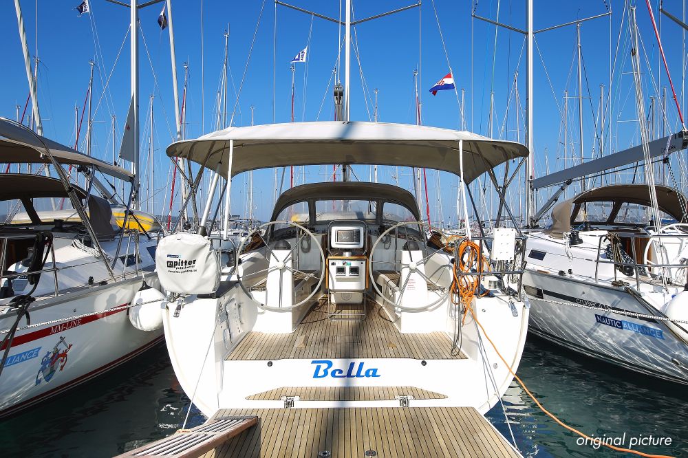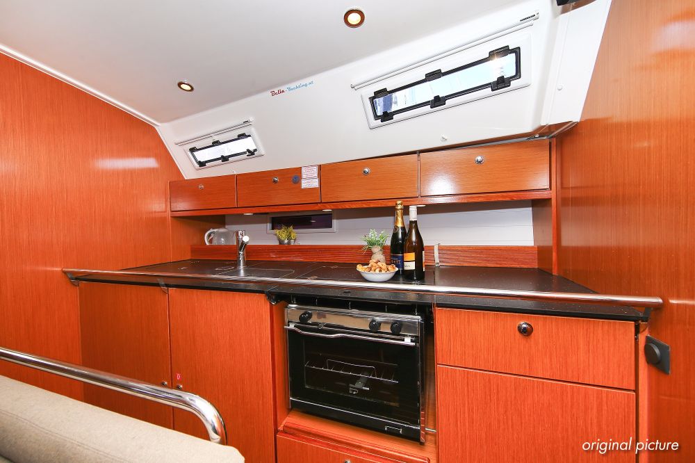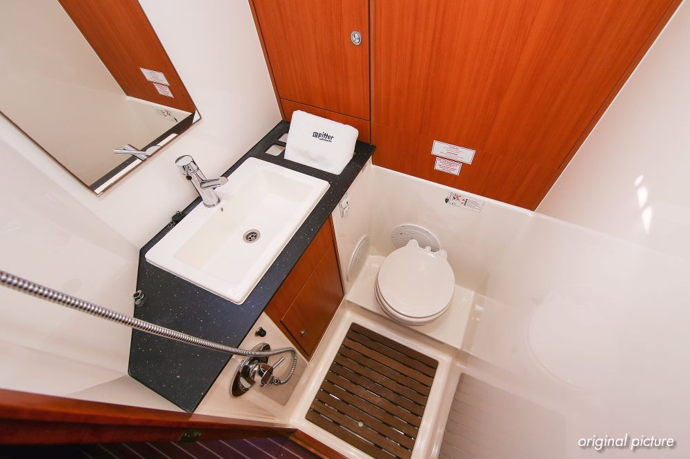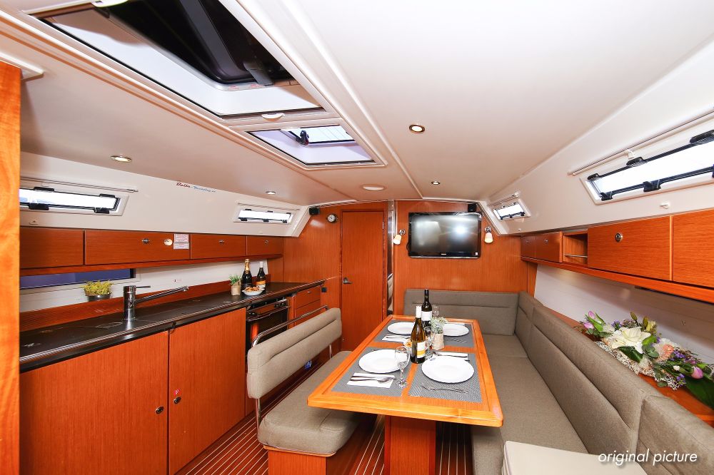 | Outside | Anker mit Kette, Ankerwinsch, Badeplattform, Biminitop, Bootshaken, Cockpitdusche, Cockpitlautsprecher, Cockpitpolster, Cockpittisch, Dieselkanister , elektr. Ankerwinsch, Fender, Festmacherleinen, Gangway, Kugelfender, Kunststoff-Eimer (Pütz), Solaranlage, Sprayhood, Teak im Cockpit, Wantenschneider, Wasserkanister , Wasserschlauch, Windex |
