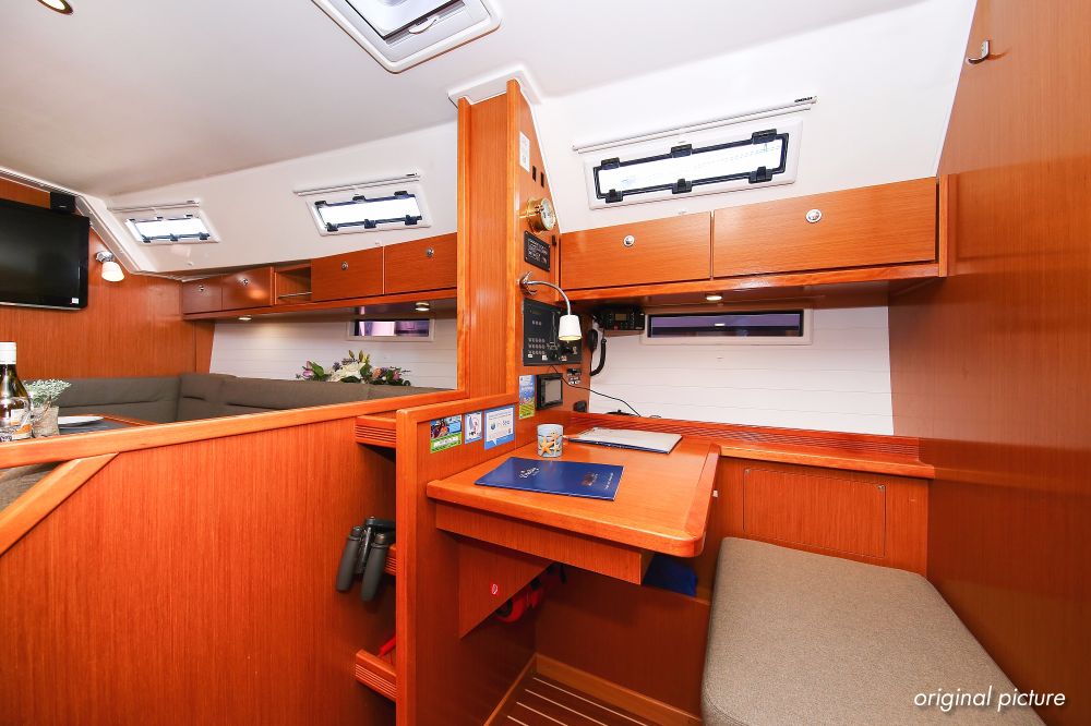 | Navigation | Barometer, Fernglas mit Peilkompass, GPS mit Kartenplotter im Cockpit, Hafenhandbücher, Handpeilkompass, Navigationsbesteck, Seekarten, Tridata (Log, Echolot, Windm.) |
