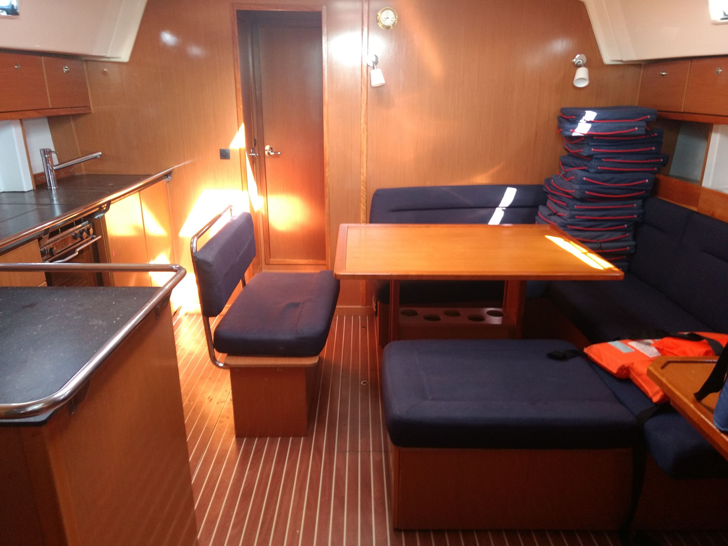 | Navigation | Barometer, Fernglas, GPS mit Kartenplotter im Cockpit, Hafenhandbücher, Handpeilkompass, Kompass, Navigationsbesteck, Seekarten, Tridata (Log, Echolot, Windm.), Windmesser |