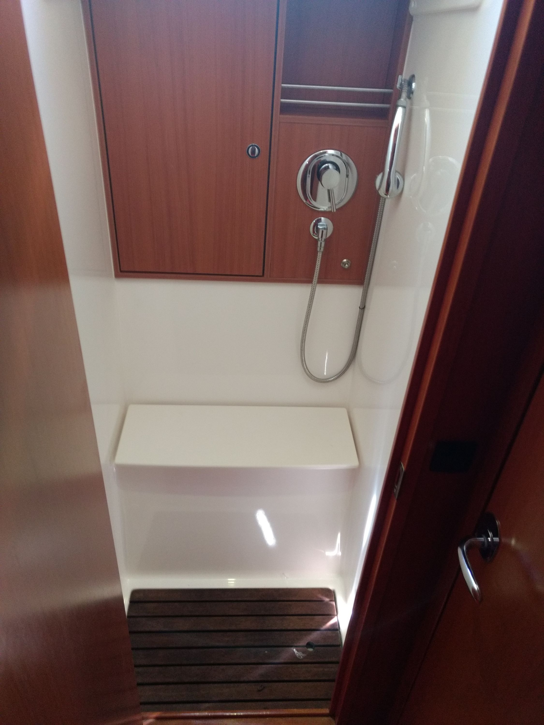 | Outside | Anker mit Kette, Badeplattform, Biminitop, Cockpitdusche, Cockpitlautsprecher, Cockpitpolster, Cockpittisch, elektr. Ankerwinsch, Fender, Kugelfender, Solaranlage, Sprayhood, Teak im Cockpit, Winschen |