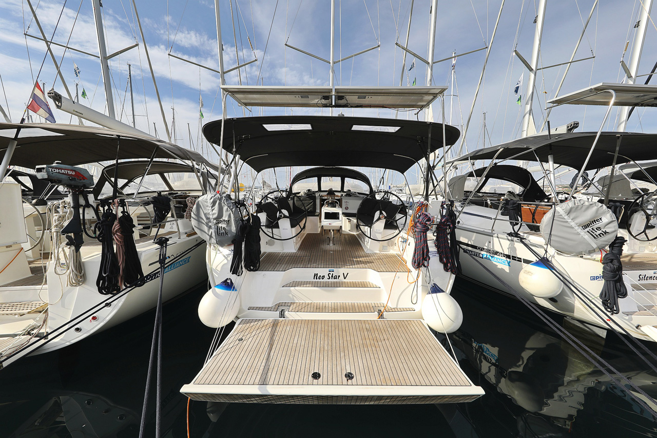 | Outside | 220 V-Landanschluss, Anker mit Kette, Ankerwinsch, Biminitop, Bootshaken, Cockpitdusche, Cockpitlautsprecher, Cockpitpolster, Cockpittisch, Dieselkanister , elektr. Ankerwinsch, Fender, Festmacherleinen, Gangway, Kugelfender, Kunststoff-Eimer (Pütz), Solaranlage, Sprayhood, Teak im Cockpit, Wantenschneider, Wasserkanister , Wasserschlauch |