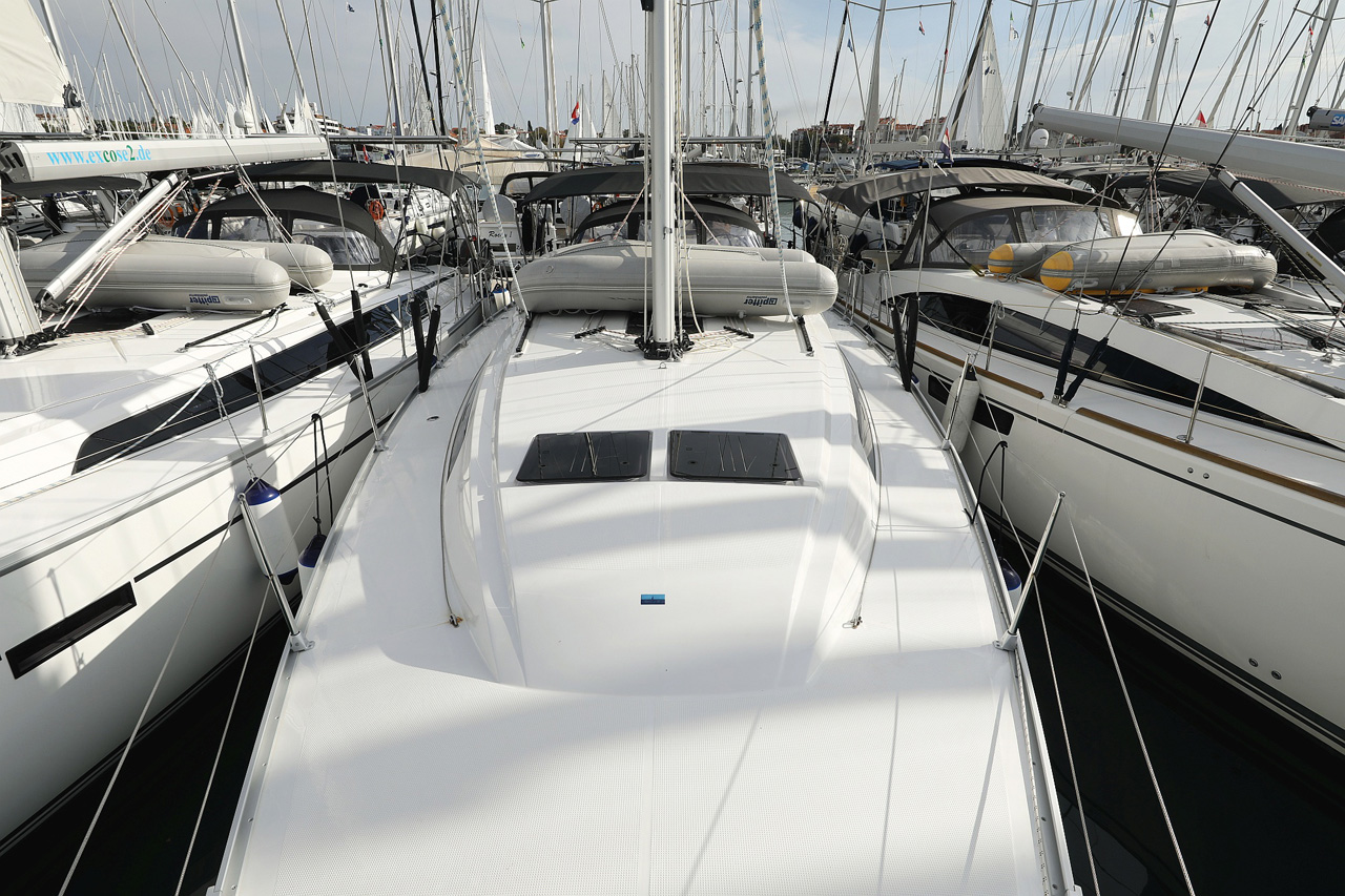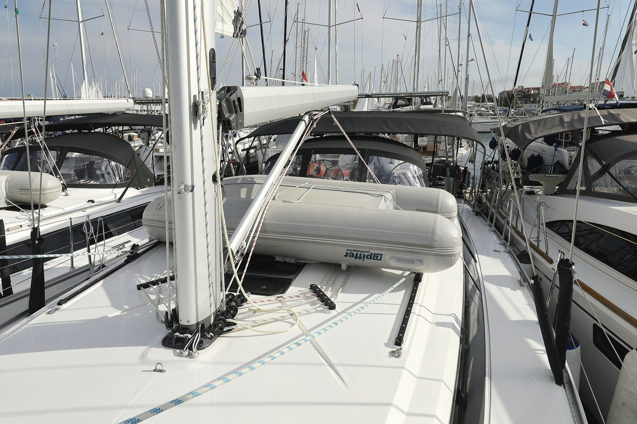 | Safety | Autopilot, Blitzboje, Bootsmannstuhl, Bordapotheke, Bordwerkzeug, Bugstrahlruder, Feststoffschwimmwesten, Feuerlöscher, Lifebelts, Motor-Ersatzteile, Nebelhorn, Notsignale, Radarreflektor, Reparaturset für Beiboot, Rettungsinsel, Suchscheinwerfer, Taschenlampe, UKW-Funk, Zweitanker |