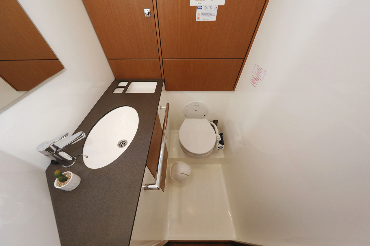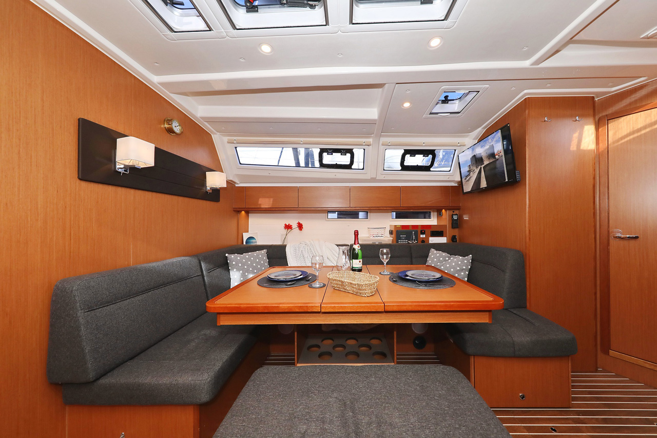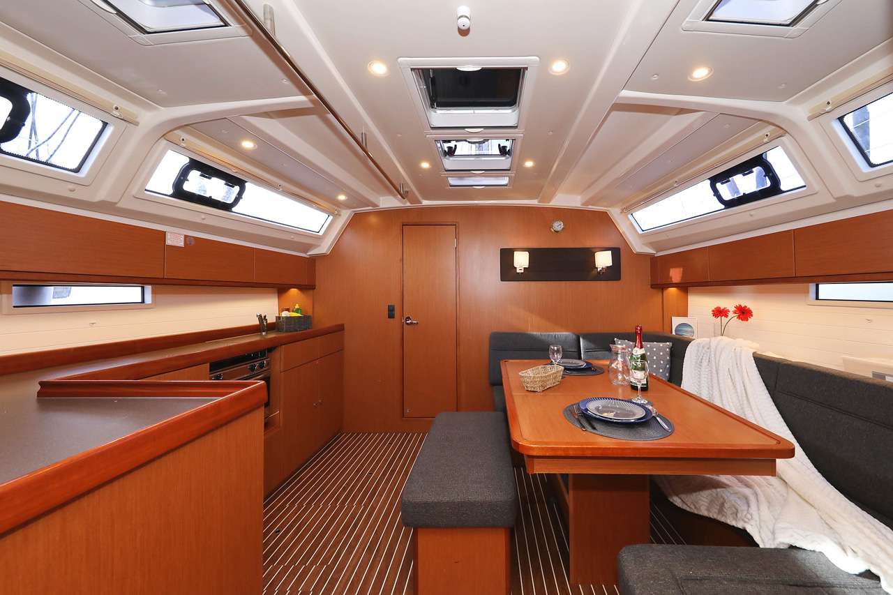| Inside | 2. Kühlschrank, Borduhr, Inverter 12V/220V, Kühlschrank, Ladegerät, Luftpumpe für Beiboot, Pantryausstattung, Radio, Warmwasser |