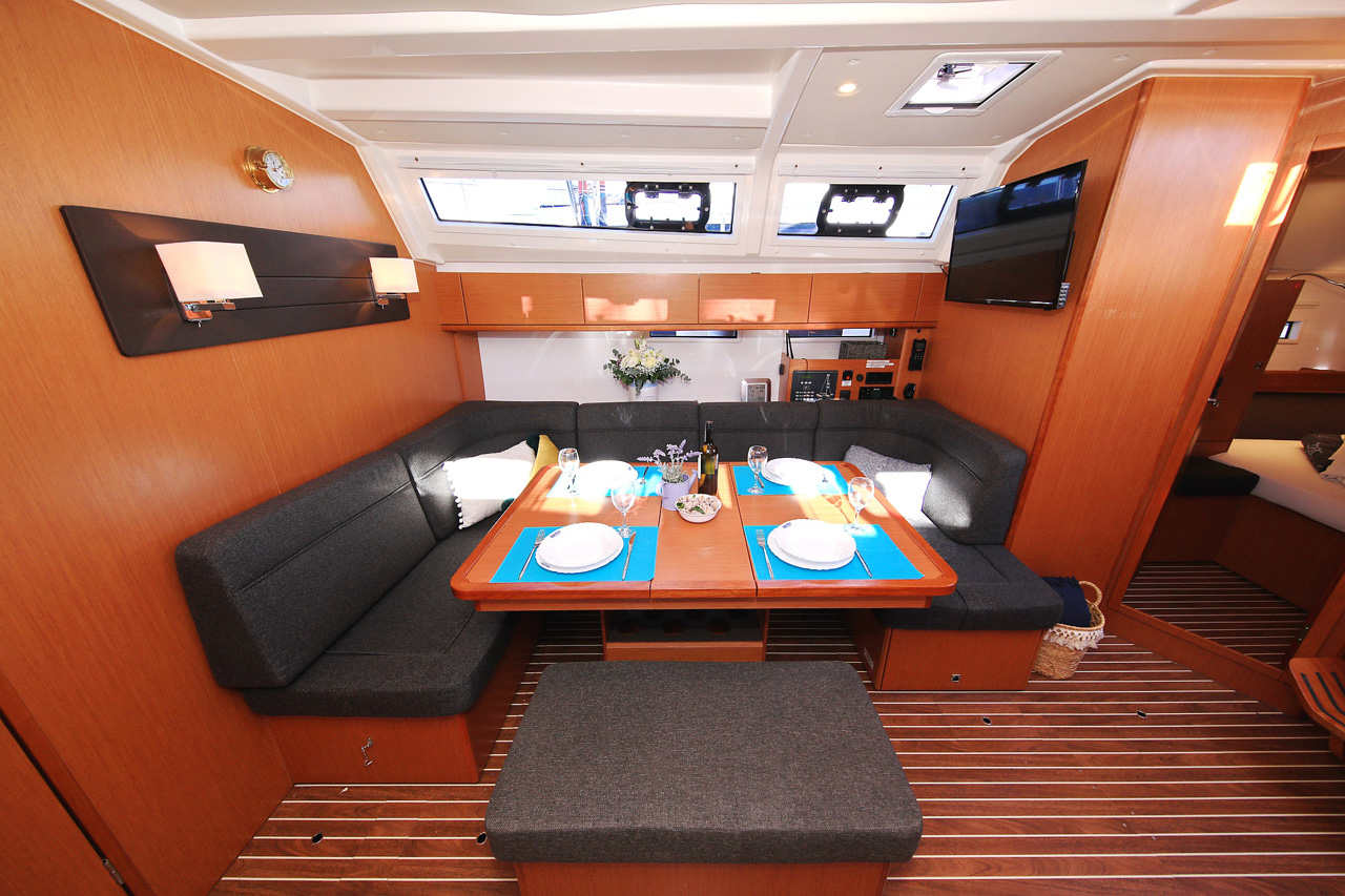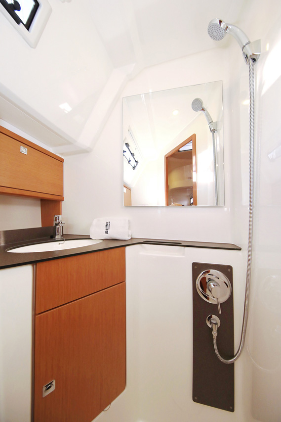 | Inside | 2. Kühlschrank, Borduhr, Heizung, Inverter 12V/220V, Kühlschrank, Ladegerät, Luftpumpe für Beiboot, Pantryausstattung, Radio, Warmwasser |