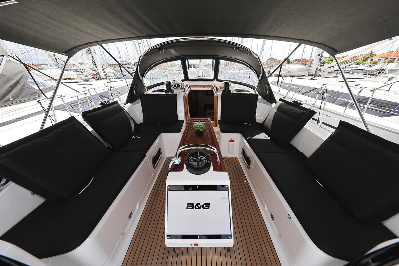 | Outside | 220 V-Landanschluss, Anker mit Kette, Ankerwinsch, Biminitop, Bootshaken, Cockpitdusche, Cockpitlautsprecher, Cockpitpolster, Cockpittisch, Dieselkanister , elektr. Ankerwinsch, Fender, Festmacherleinen, Gangway, Kugelfender, Kunststoff-Eimer (Pütz), Solaranlage, Sprayhood, Teak im Cockpit, Teakdeck, Wantenschneider, Wasserkanister , Wasserschlauch |