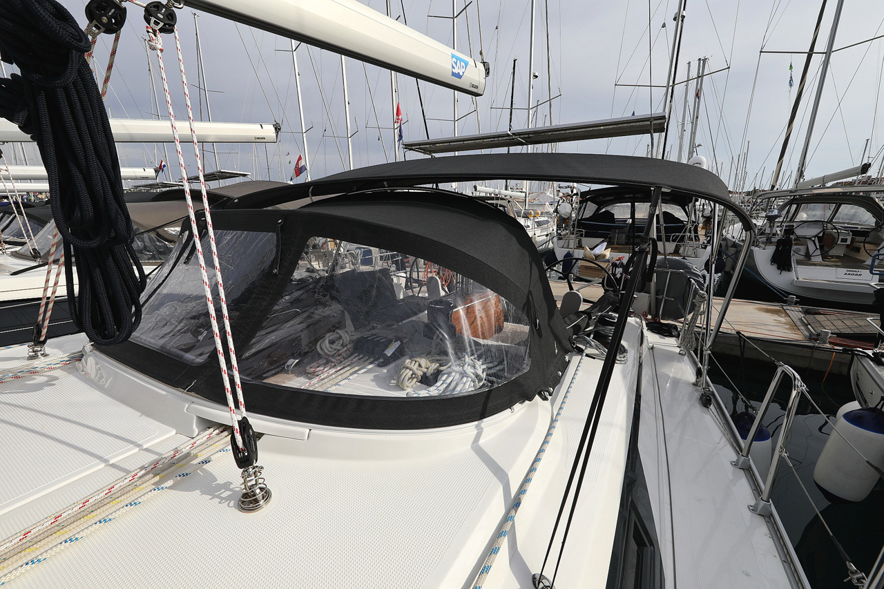 | Outside | 220 V-Landanschluss, Anker mit Kette, Ankerwinsch, Biminitop, Bootshaken, Cockpitdusche, Cockpitlautsprecher, Cockpitpolster, Cockpittisch, Dieselkanister , elektr. Ankerwinsch, Fender, Festmacherleinen, Gangway, Kugelfender, Kunststoff-Eimer (Pütz), Solaranlage, Sprayhood, Teak im Cockpit, Wantenschneider, Wasserkanister , Wasserschlauch |