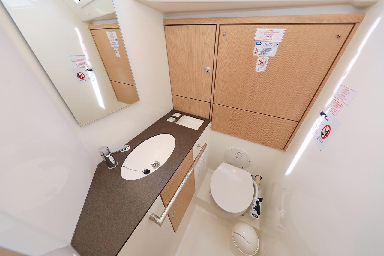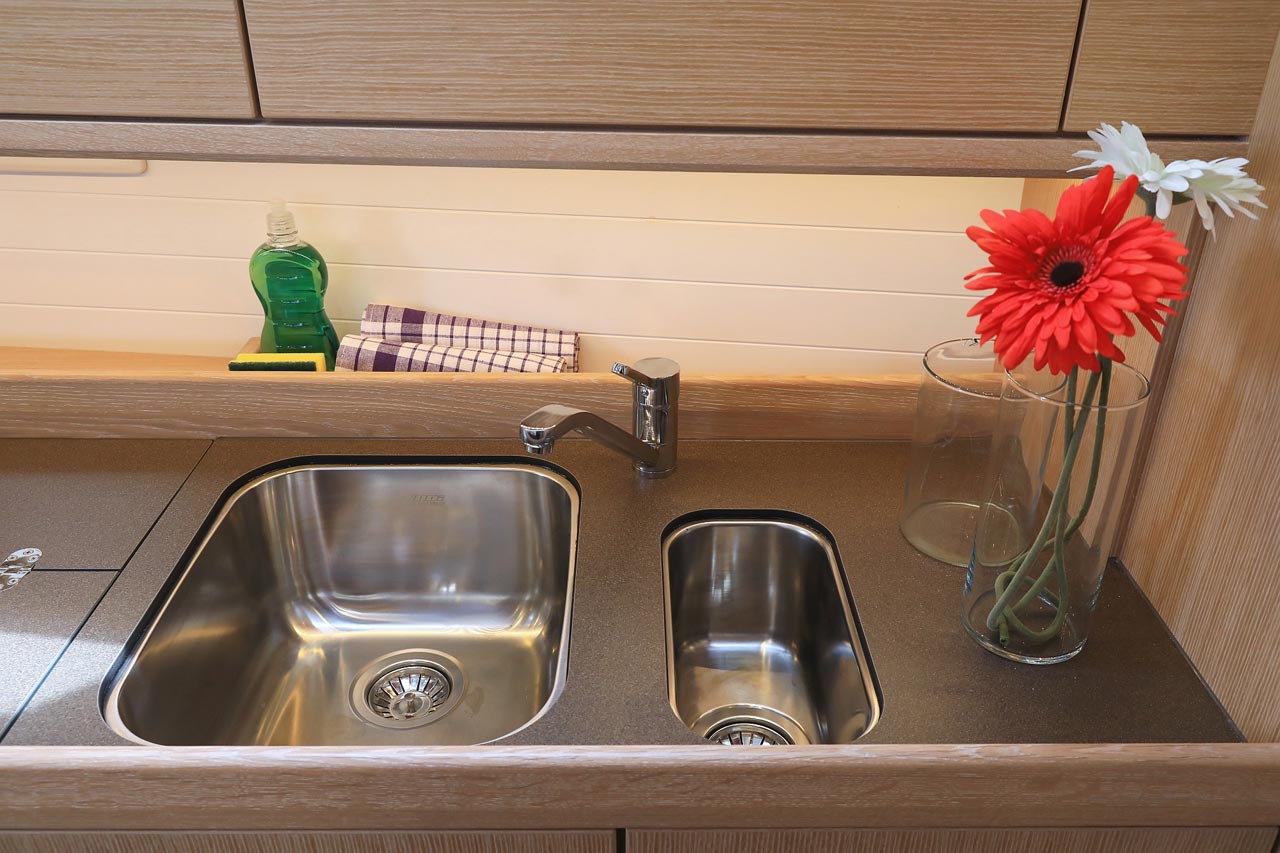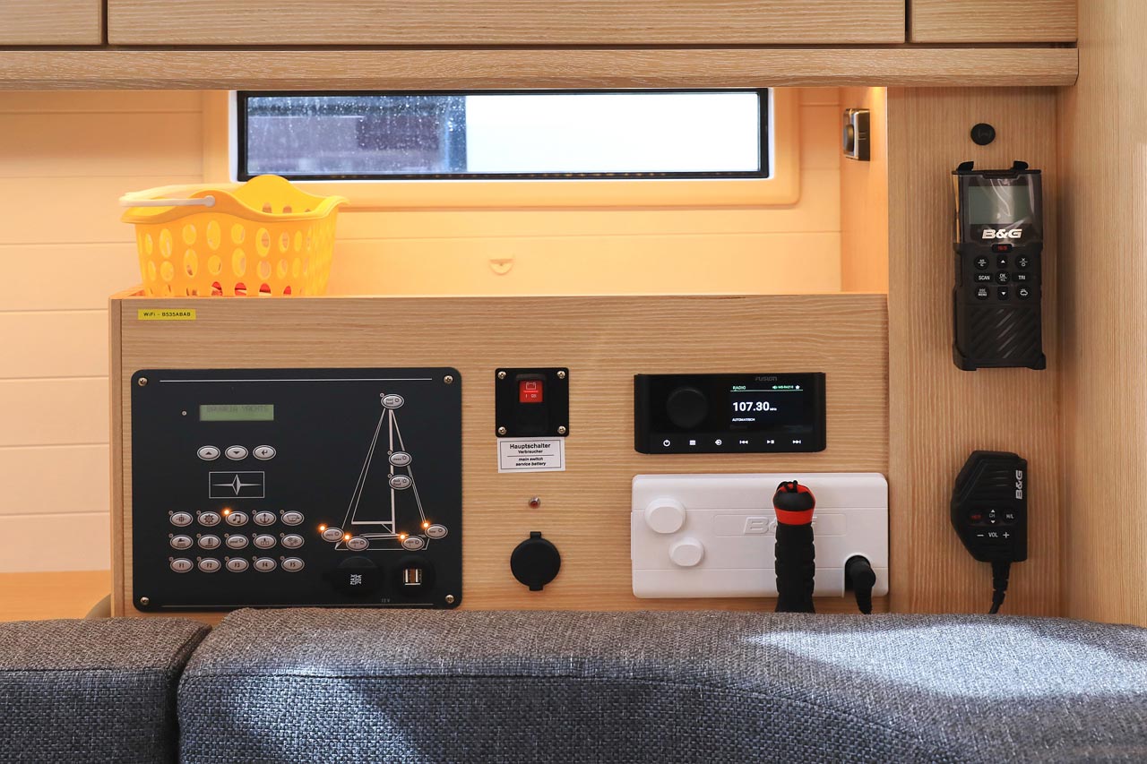 | Inside | 2. Kühlschrank, Borduhr, FUSION Sound System, Inverter 12V/220V, Kühlschrank, Ladegerät, Luftpumpe für Beiboot, Pantryausstattung, Radio mit CD, USB, Bluetooth, AUX, DVD, Warmwasser |