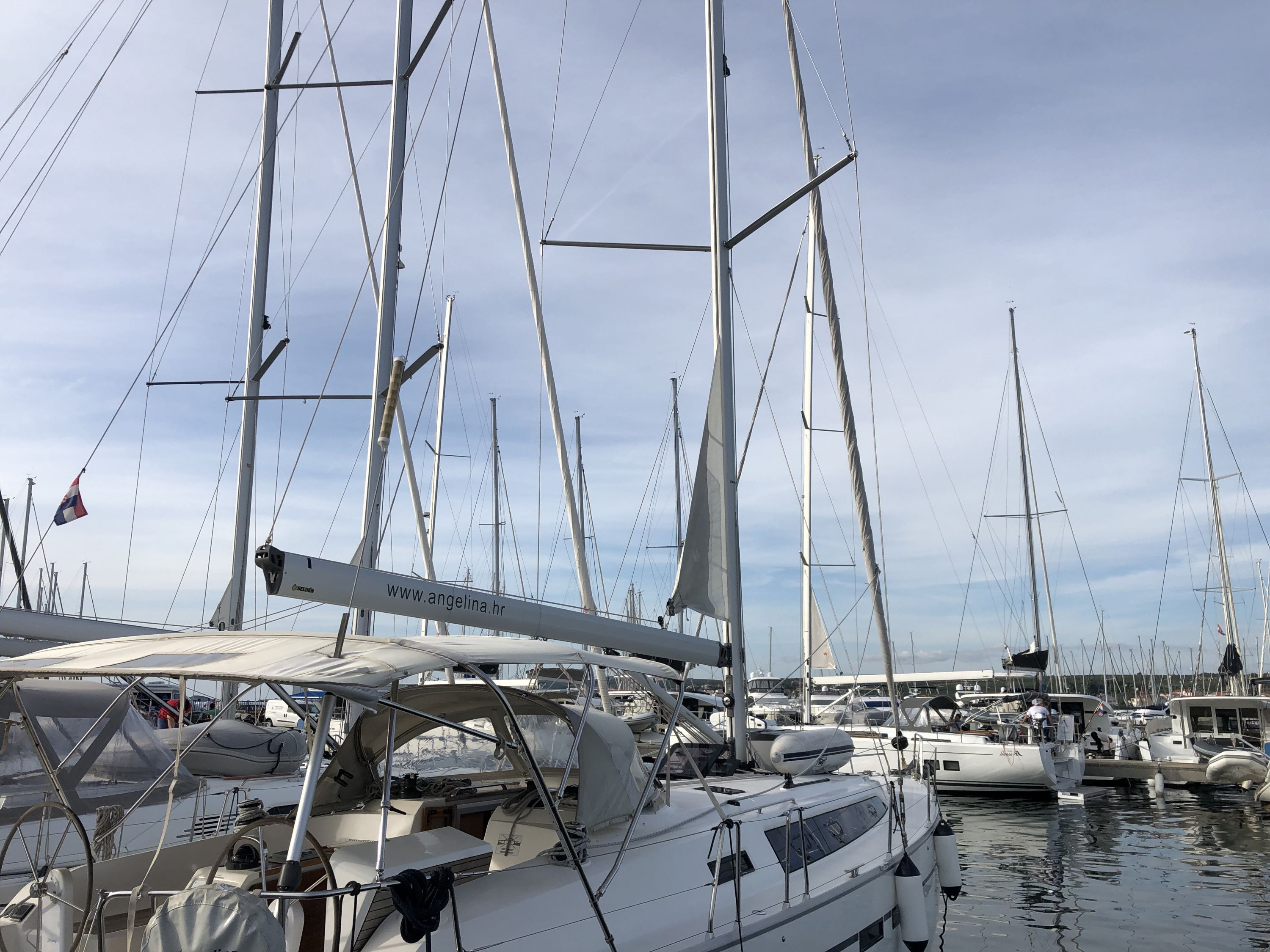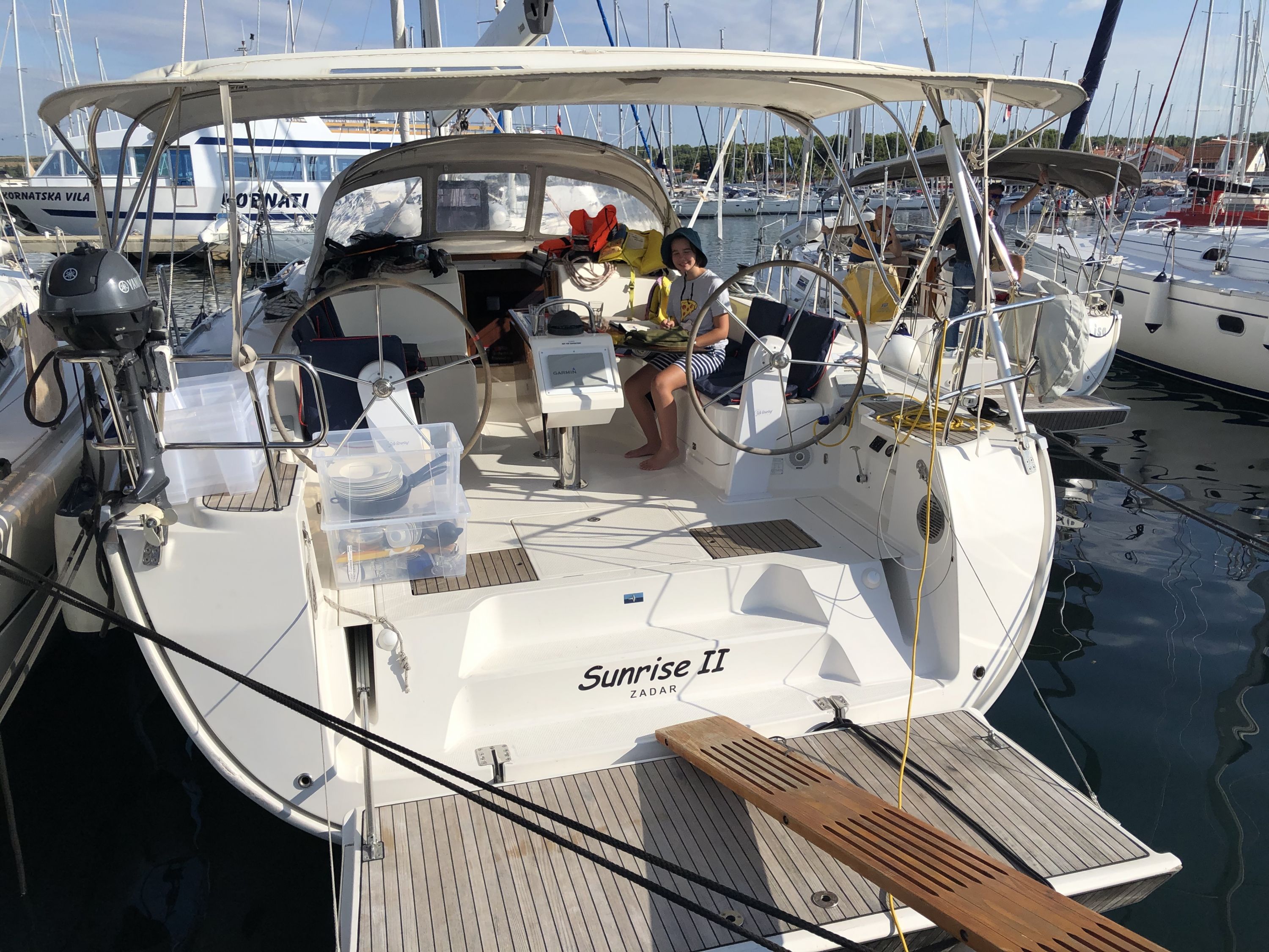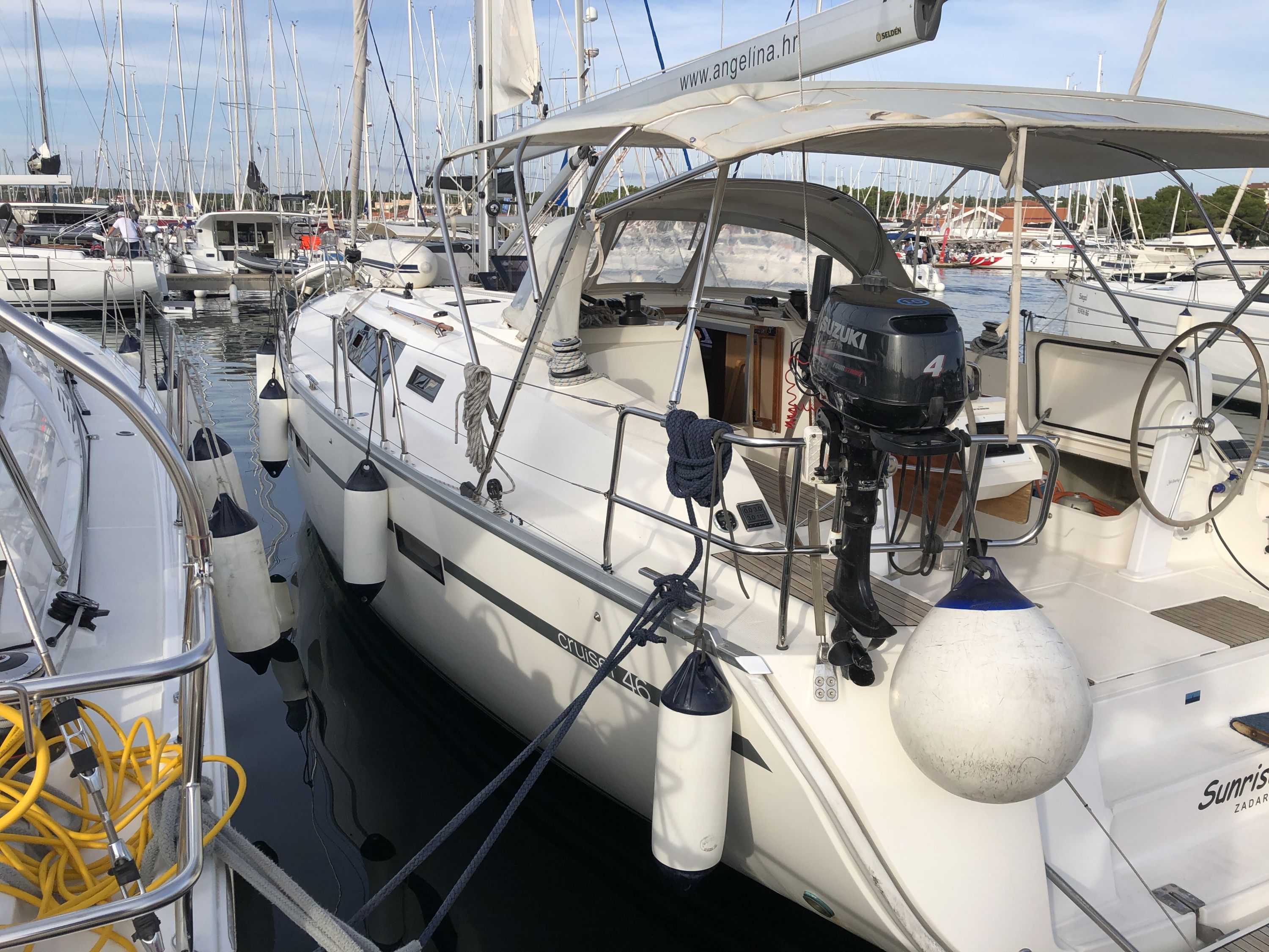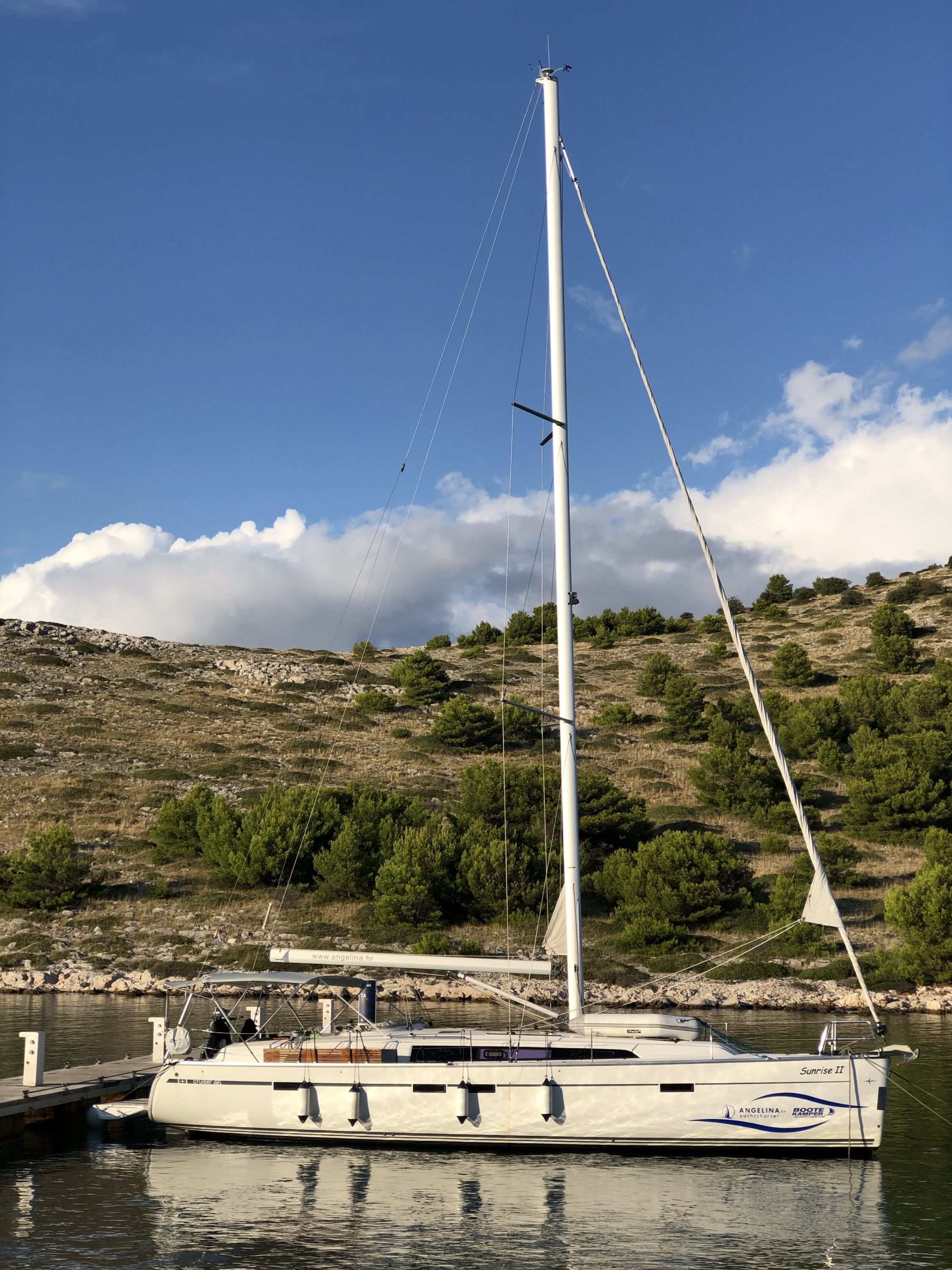 | Outside | 220 V-Landanschluss, Anker mit Kette, Biminitop, Cockpitdusche, Cockpitlautsprecher, Cockpitpolster, Cockpittisch, elektr. Ankerwinsch, Fender, Gangway, Kugelfender, Sprayhood, Teak auf Badeplattform, Teak im Cockpit, Winschen |