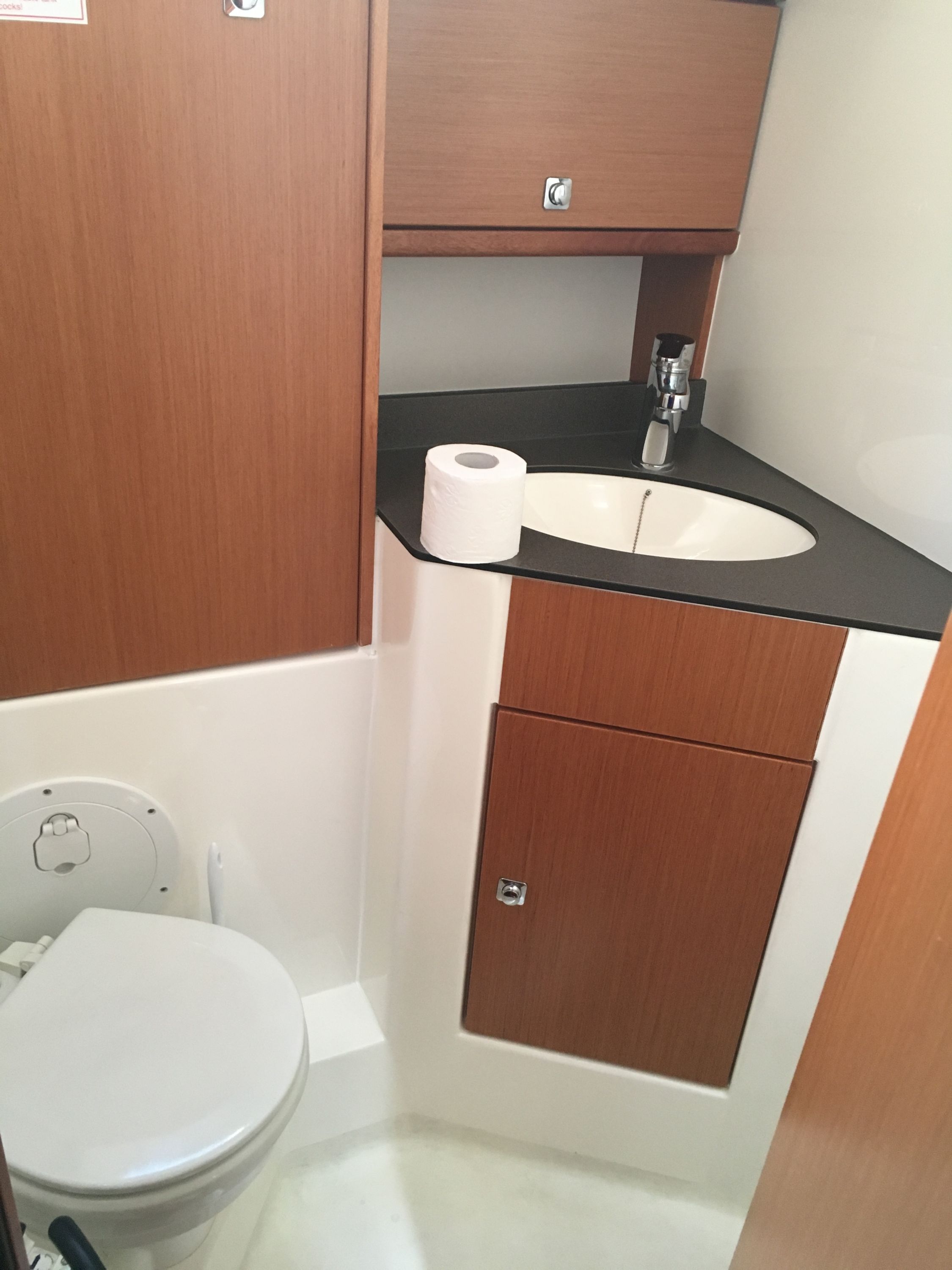 | Navigation | Fernglas, GPS mit Kartenplotter im Cockpit, Hafenhandbücher, Kompass, Seekarten, Tridata (Log, Echolot, Windm.), Windmesser |