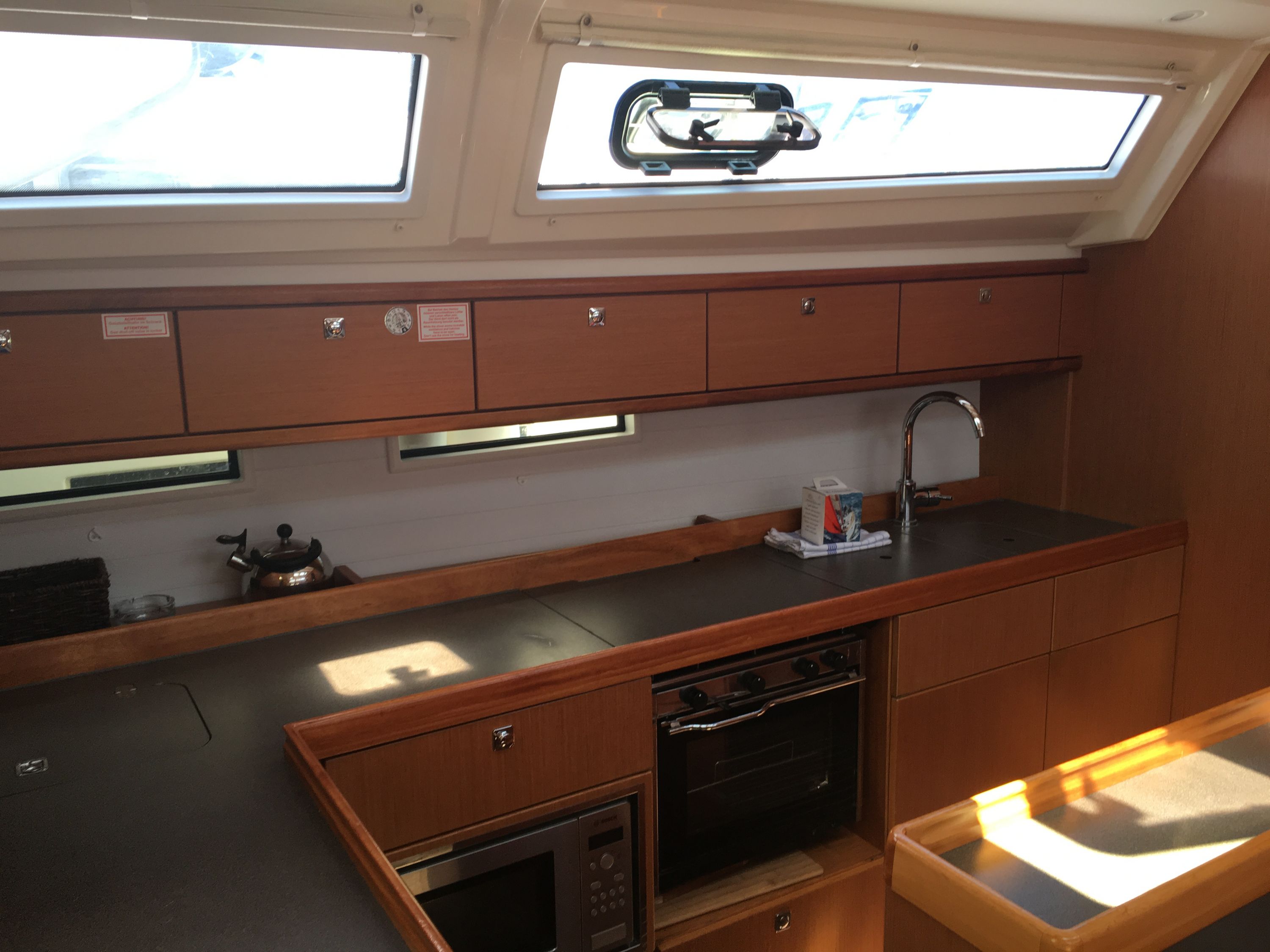 | Safety | Autopilot, Bordapotheke, Bugstrahlruder, elektr. Bilgepumpe, Feststoffschwimmwesten, Handbilgepumpe, Lifebelts, Notsignale, Radarreflektor, Rettungsinsel, Rettungskragen, Taschenlampe, UKW-Funk, Zweitanker |