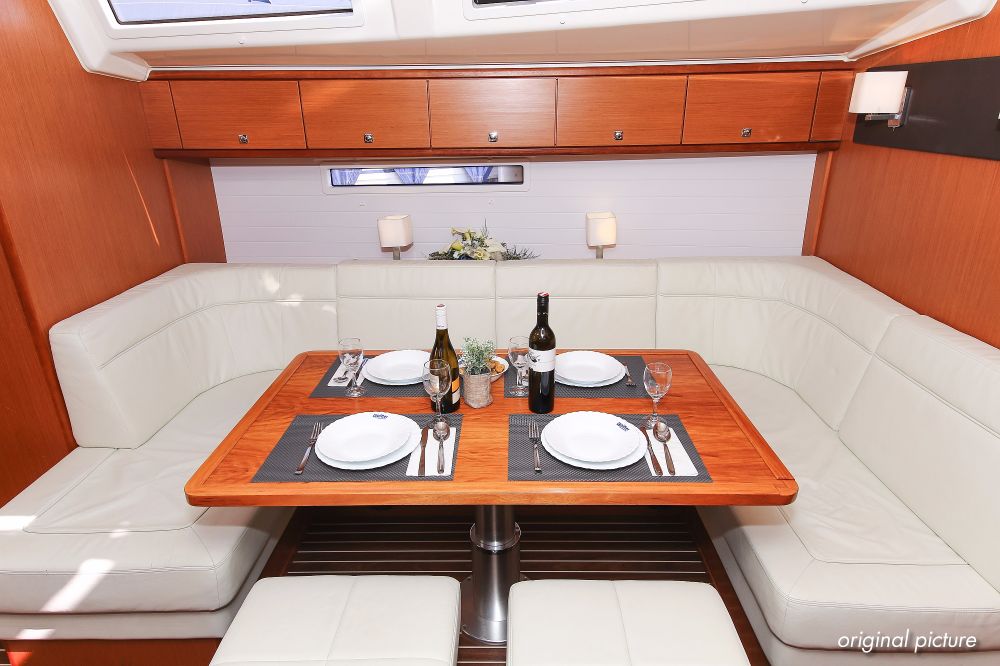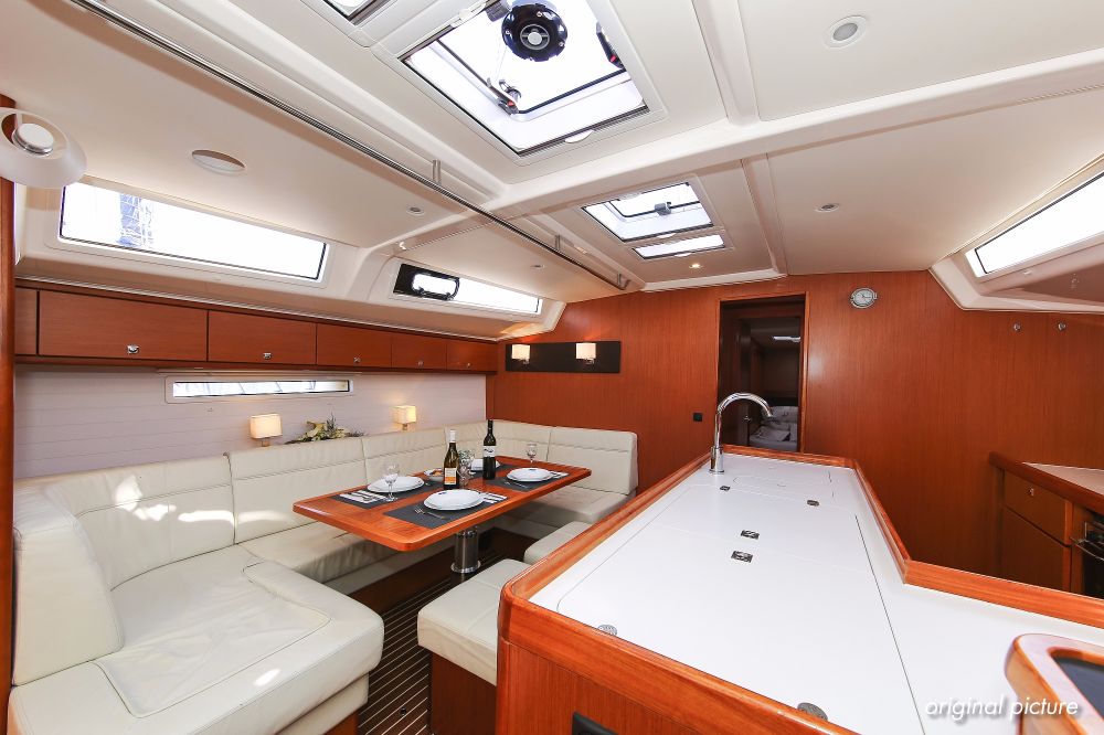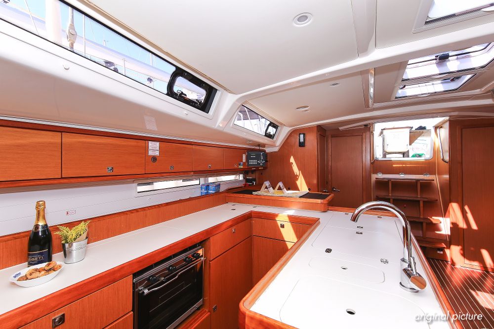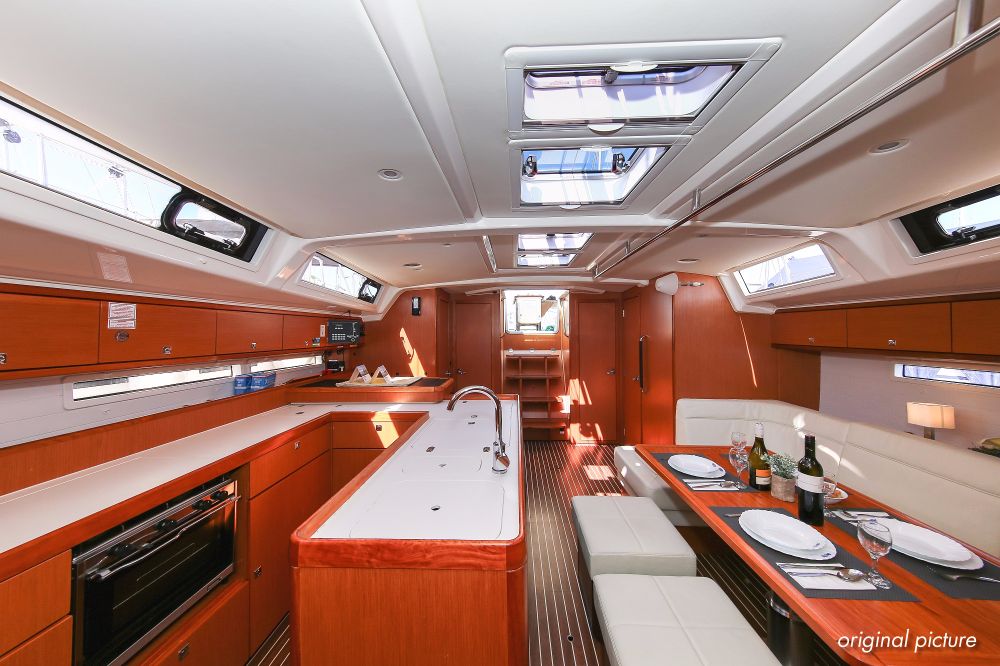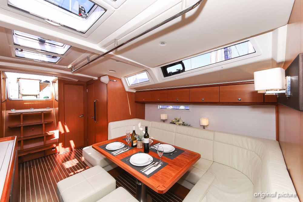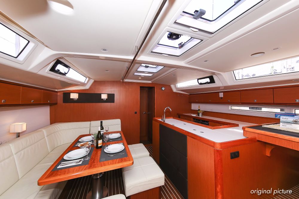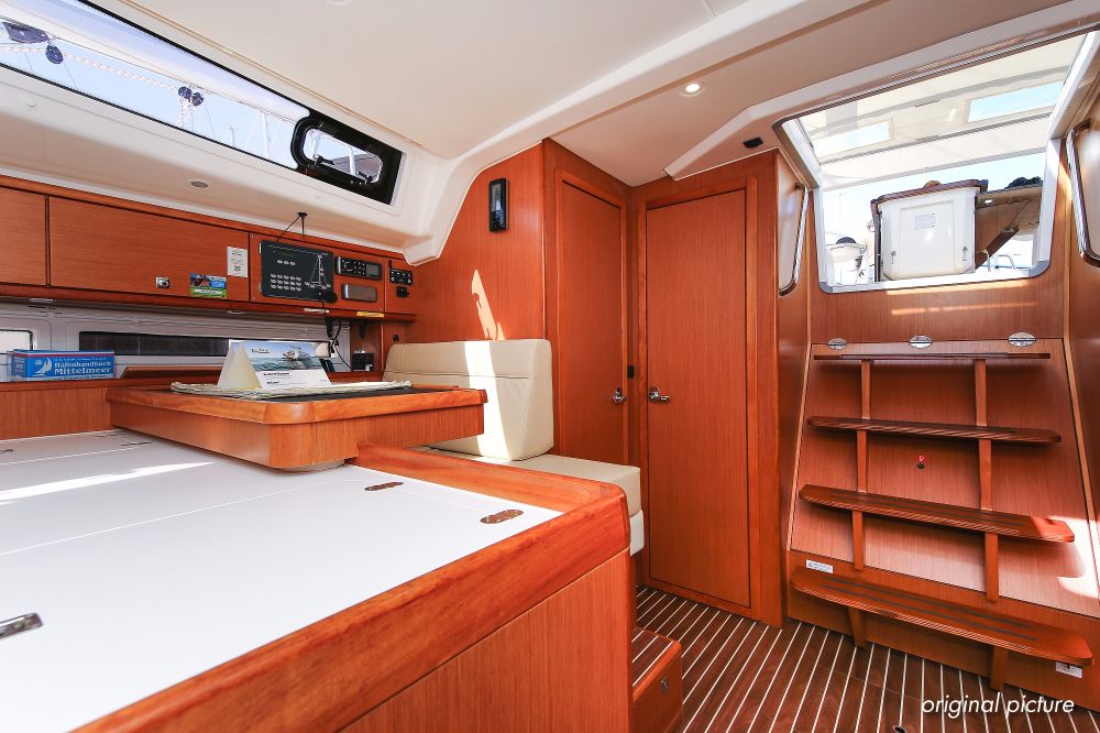 Inside 2. Kühlschrank, Borduhr, Generator, Heizung, Inverter 12V/220V, Kühlschrank, Ladegerät, Luftpumpe für Beiboot, Pantryausstattung, Radio, Salontisch absenkbar, Warmwasser