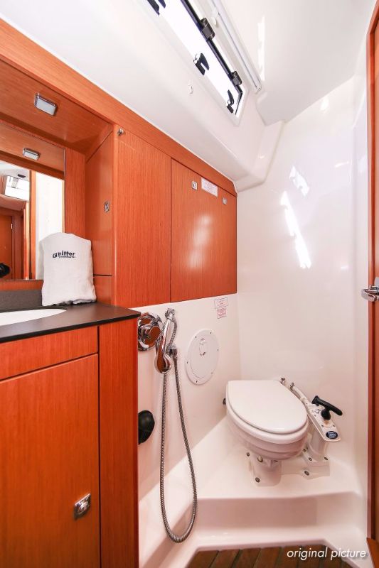 Outside 220 V-Landanschluss, Anker mit Kette, Ankerwinsch, Badeplattform, Biminitop, Bootshaken, Cockpitdusche, Cockpitlautsprecher, Cockpitpolster, Cockpittisch, Dieselkanister , elektr. Ankerwinsch, elektr. Winsch, Fender, Festmacherleinen, Gangway, Kugelfender, Kunststoff-Eimer (Pütz), Sprayhood, Teak im Cockpit, Teakdeck, Wantenschneider, Wasserkanister , Wasserschlauch, Windex