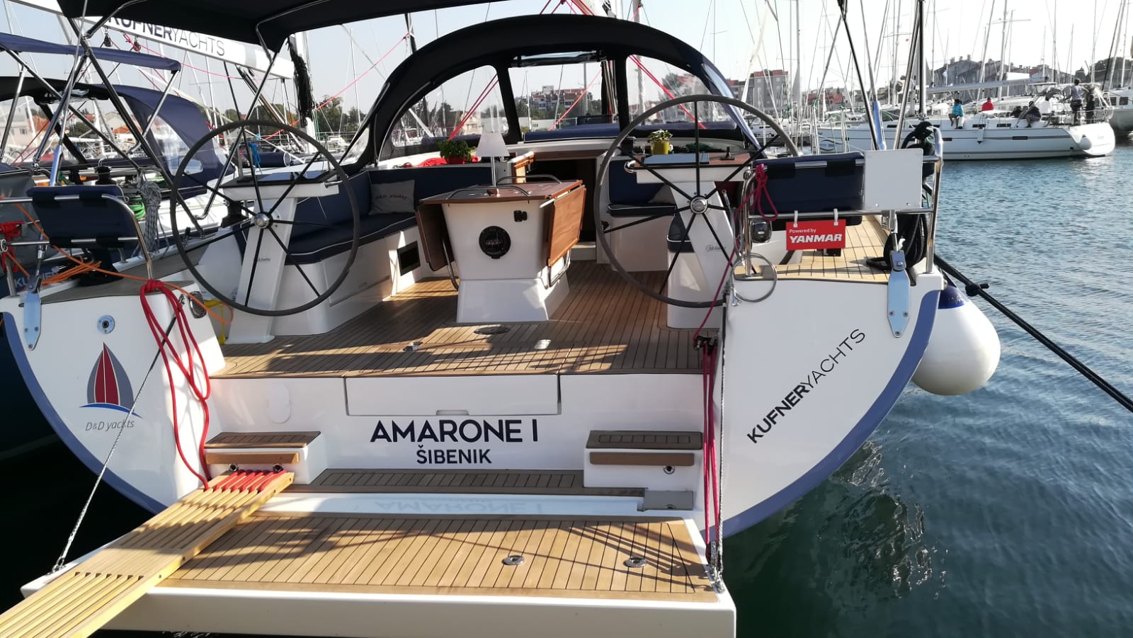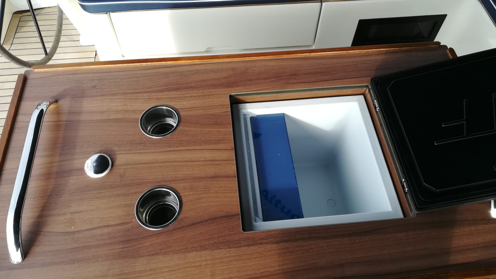 | Outside | Badeplattform, Biminitop, Cockpitdusche, Cockpitlautsprecher, Cockpitpolster, Cockpittisch, Sprayhood, Teak im Cockpit, Teakdeck |
