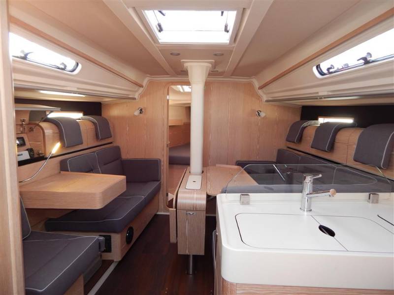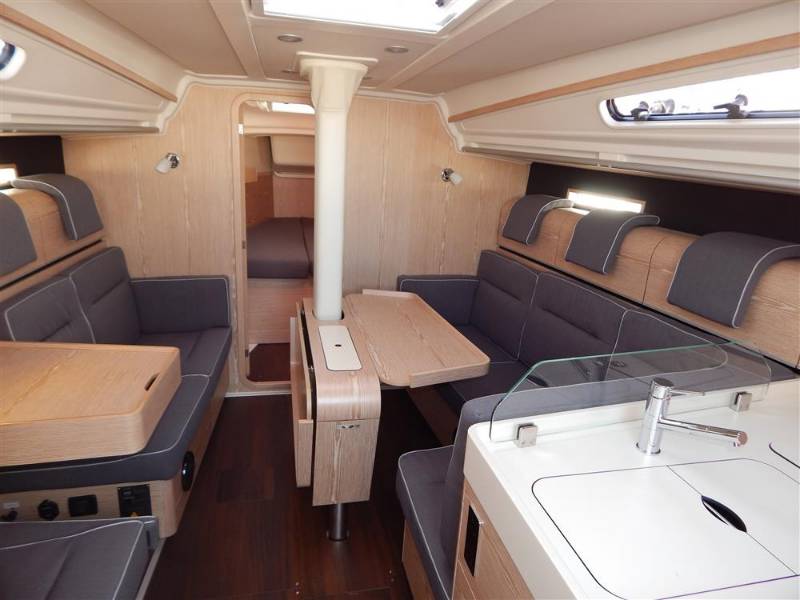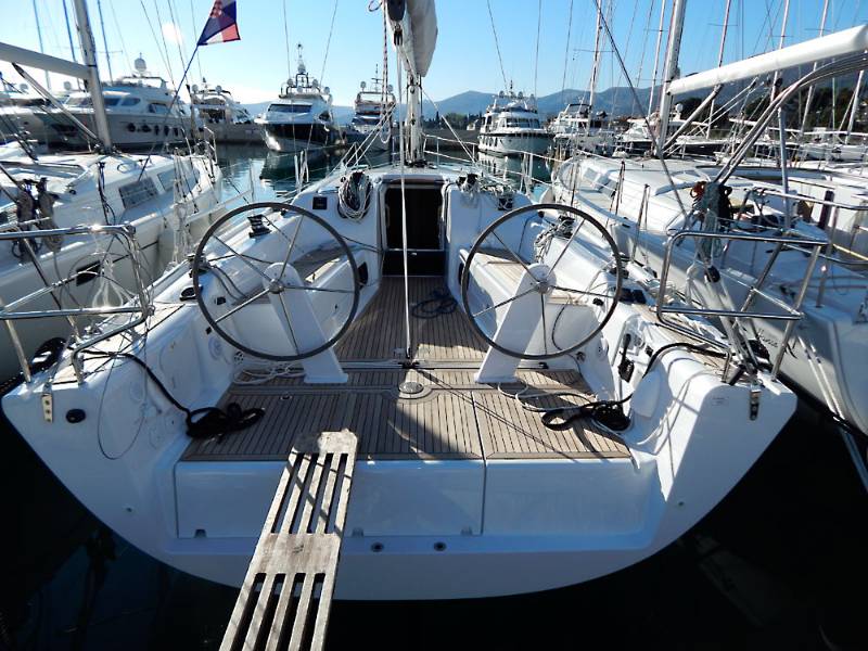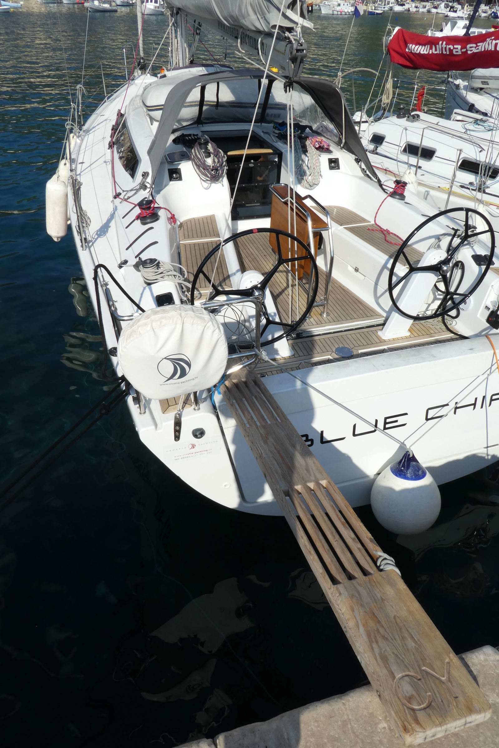 | Outside | Badeplattform, Biminitop, Cockpitdusche, Cockpitlautsprecher, Cockpittisch, elektr. Ankerwinsch, Sprayhood, Teak im Cockpit |