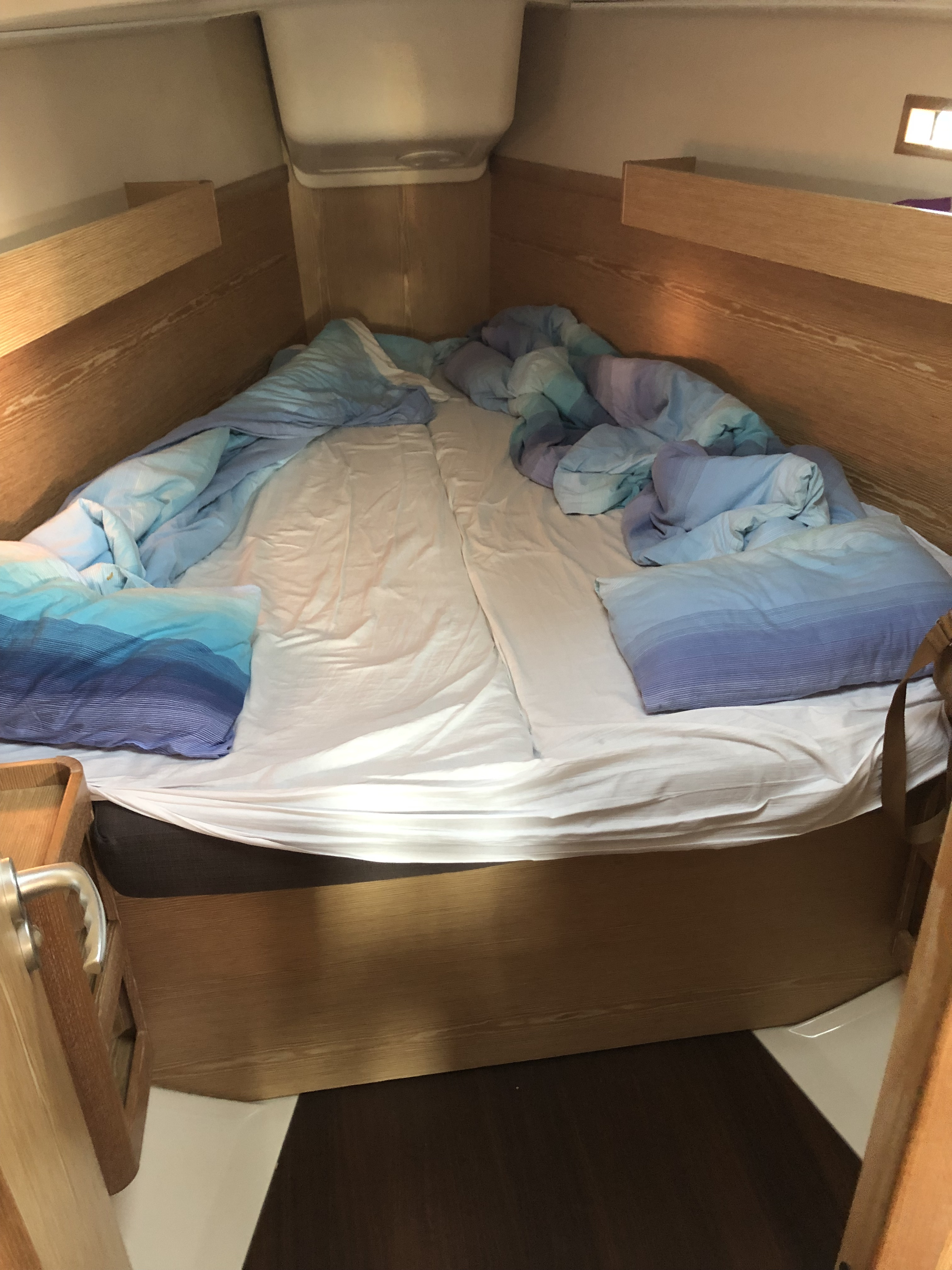 Yacht hatte bei der Übernahme zwei Defekte, die für den bevorstehenden Törn nicht mehr beseitigt werden konnten. Die Vordeckluke wies einen Riss auf, war jedoch noch dicht und die Tür zur Toilette konnte nicht mehr festgestellt werden, da das Schloss beschädigt war.
