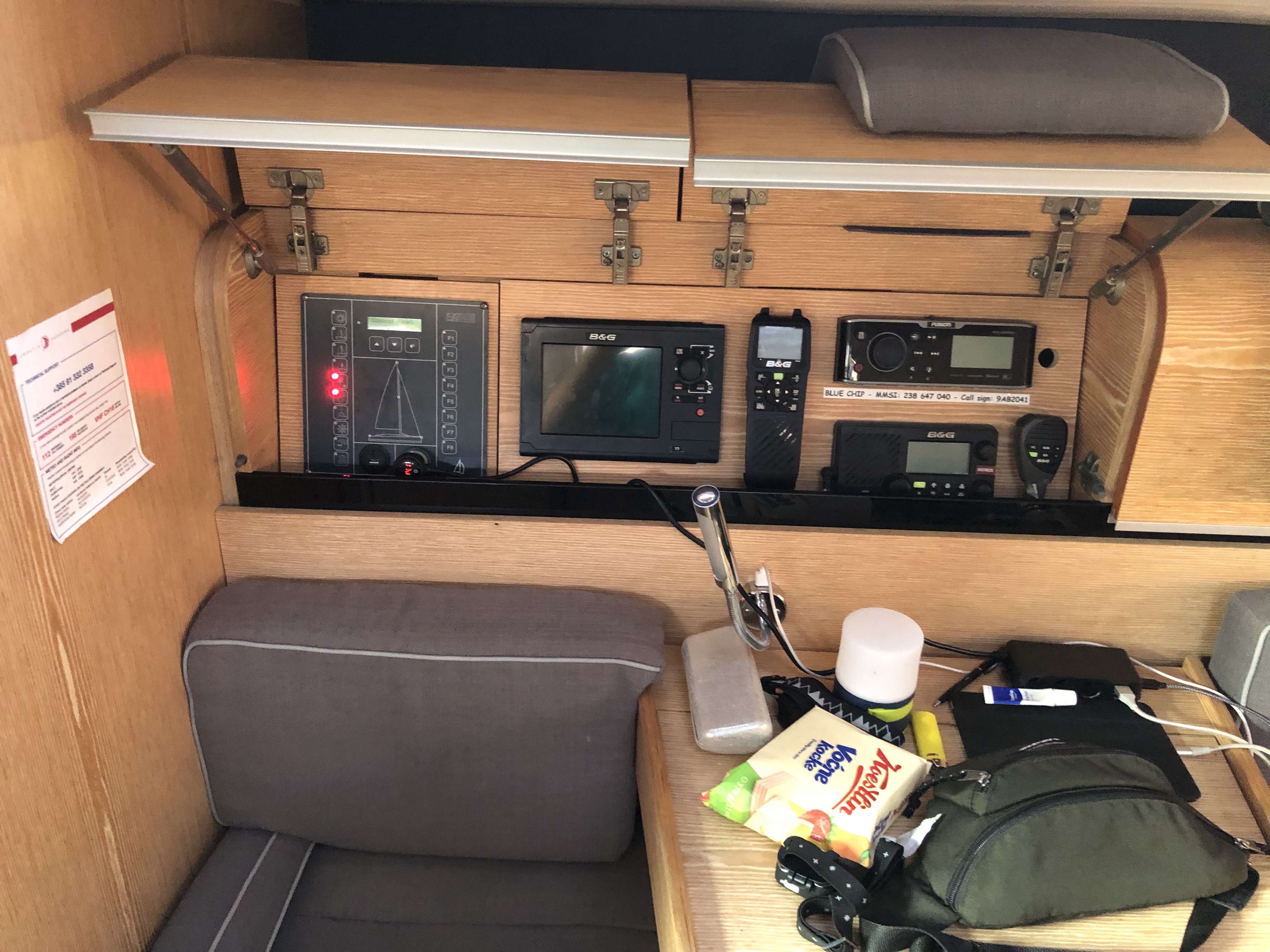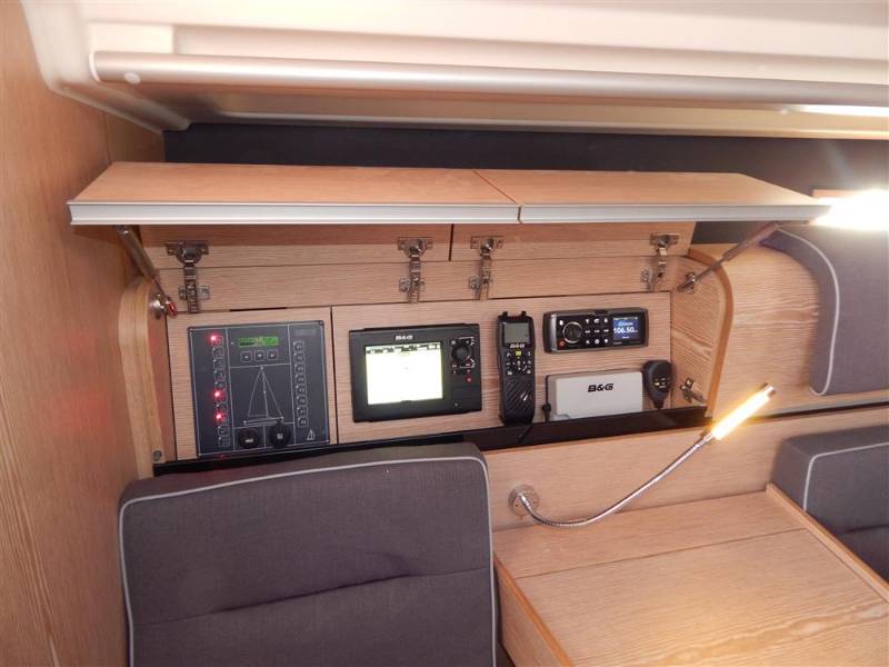 | Navigation | GPS mit Kartenplotter, Hafenhandbücher, Seekarten, Tridata (Log, Echolot, Windm.) |