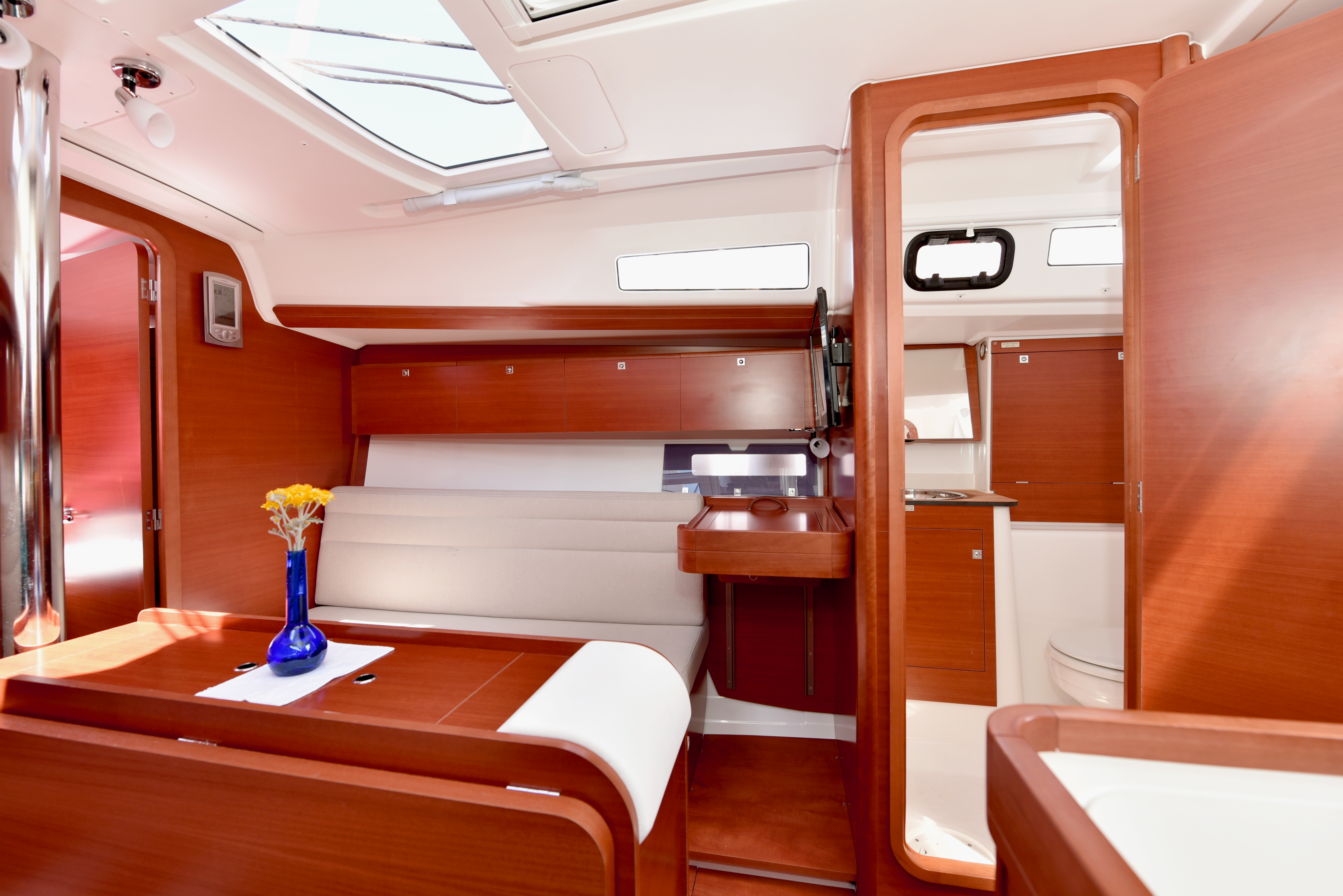 Das Boot ist trotz der intensiven Nutzung in einem guten Zustand. Kleinere Mängel (fehlende Deckel der Lautsprecher etc.) wurden von uns bei der Übergabe bemängelt und bei der Rückgabe vom Vercharterer auch nicht angesprochen. Check-in und Check-out waren auf die technischen Komponenten fokussiert - das ist gut so!