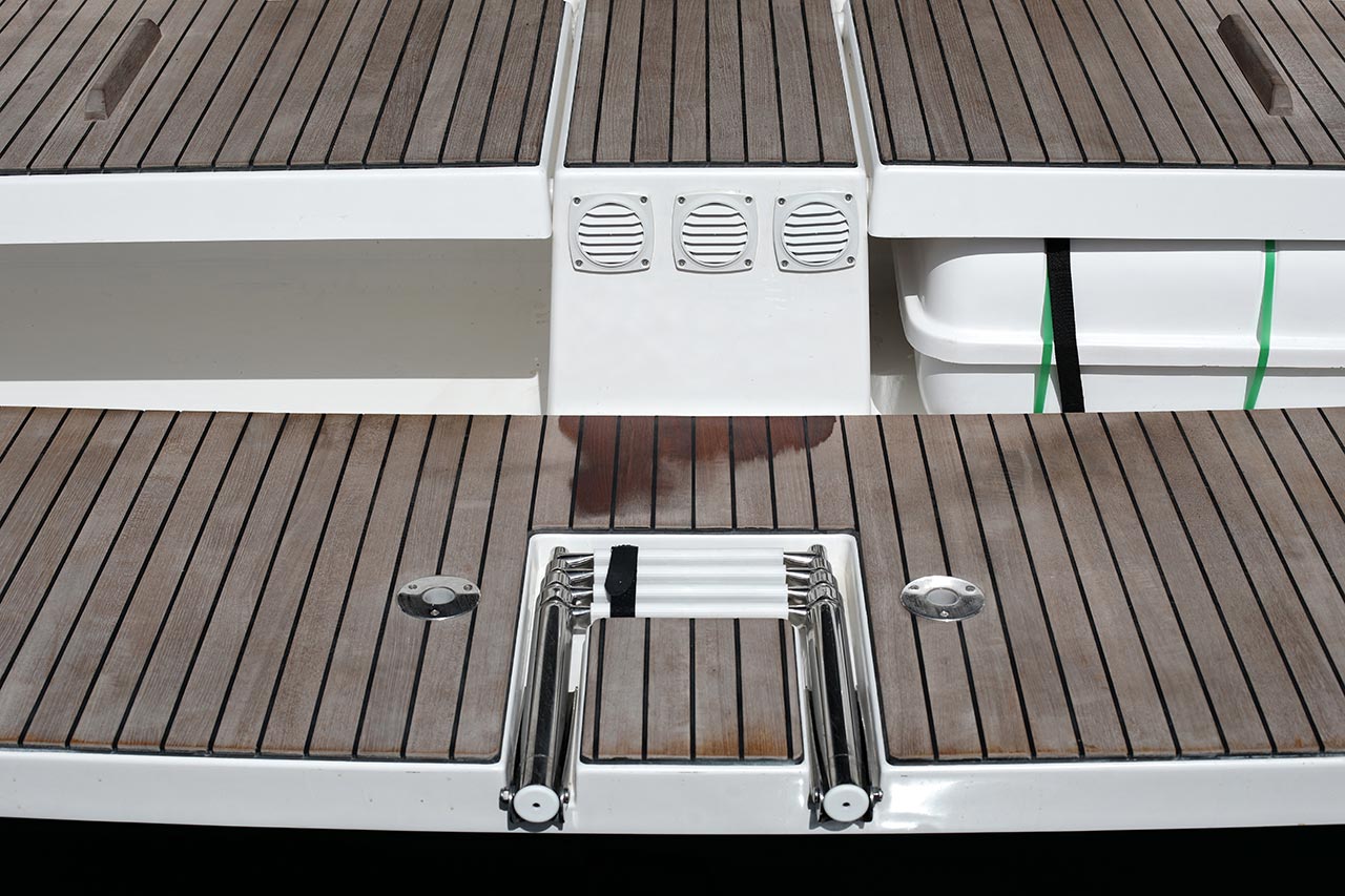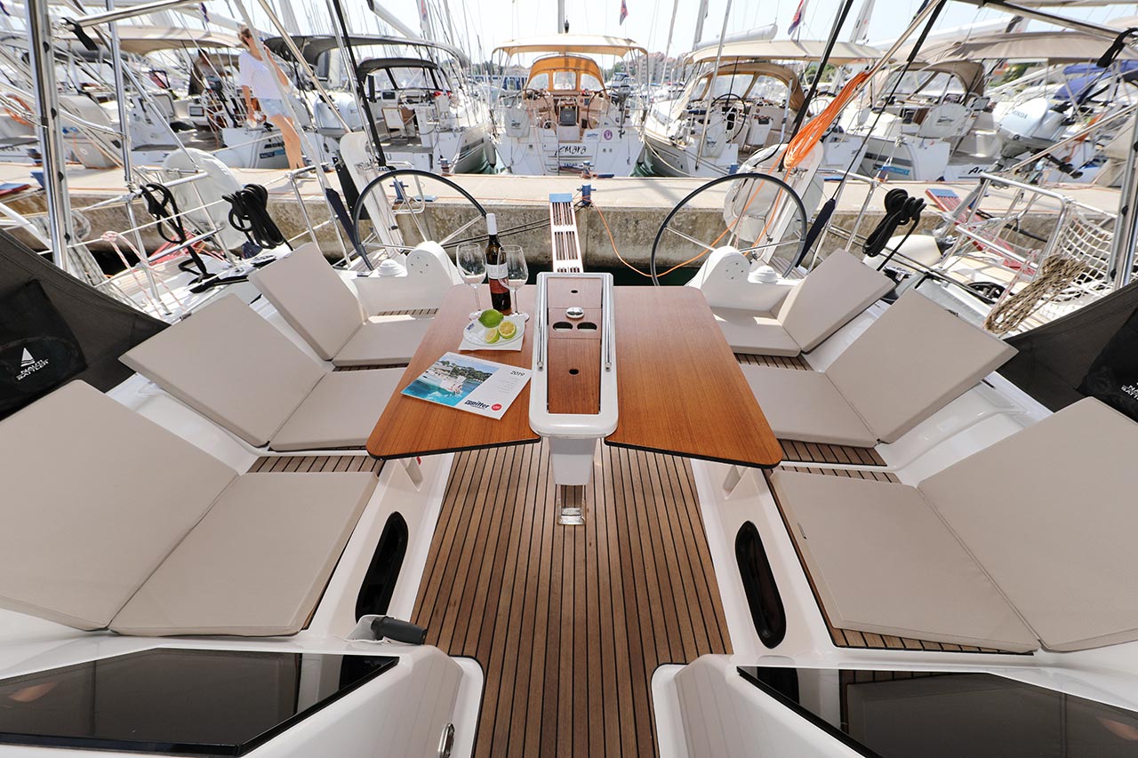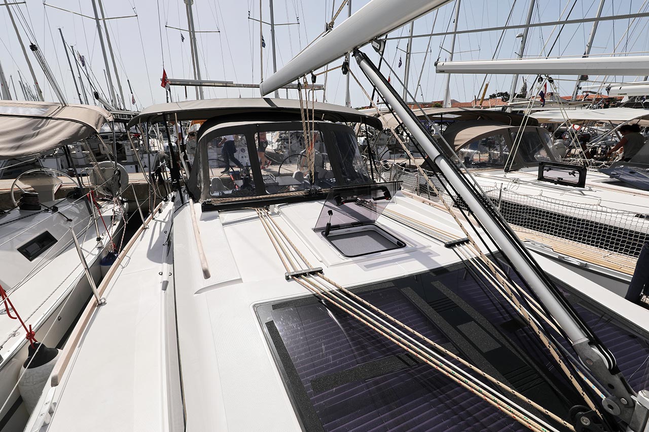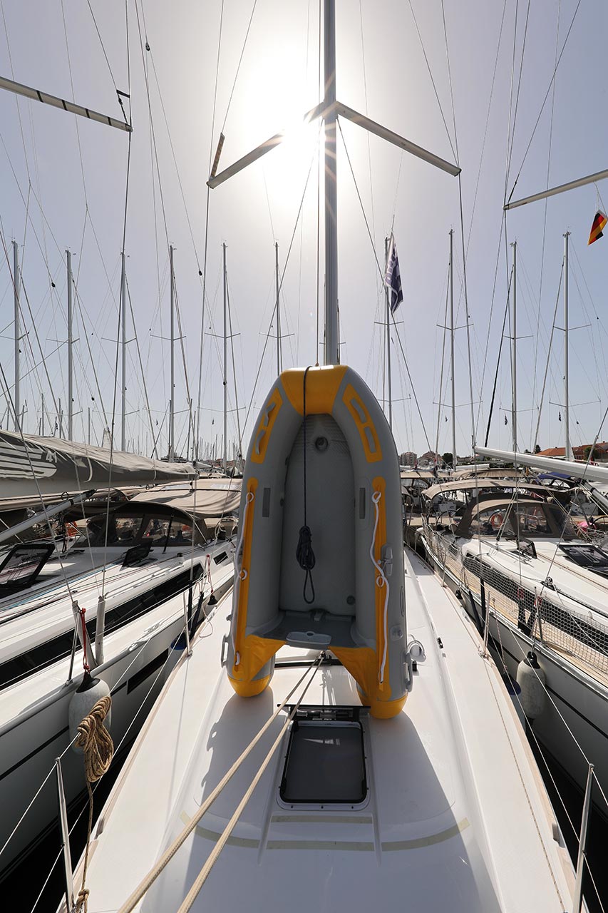| Outside | 220 V-Landanschluss, Anker mit Kette, Ankerwinsch, Badeplattform, Biminitop, Bootshaken, Cockpitdusche, Cockpitlautsprecher, Cockpitpolster, Cockpittisch, Dieselkanister , elektr. Ankerwinsch, Fender, Festmacherleinen, Gangway, Kugelfender, Kunststoff-Eimer (Pütz), Solaranlage, Sprayhood, Teak im Cockpit, Wantenschneider, Wasserkanister , Wasserschlauch |