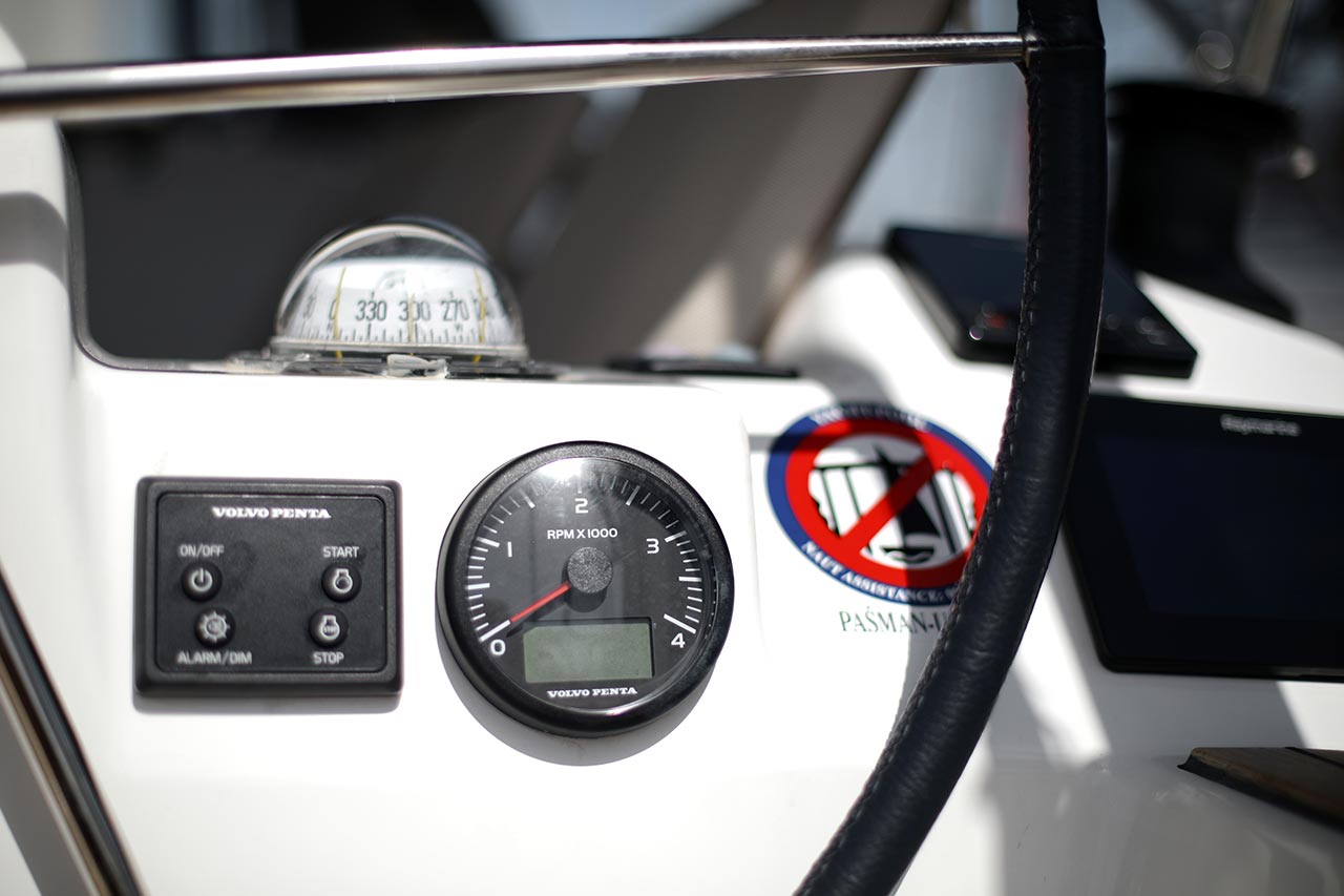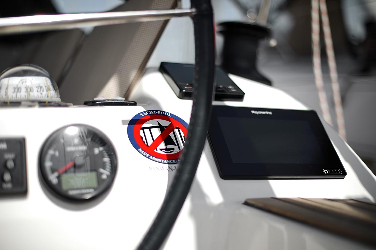 | Navigation | Barometer, Fernglas mit Peilkompass, GPS mit Kartenplotter im Cockpit, Hafenhandbücher, Navigationsbesteck, Seekarten, Tridata (Log, Echolot, Windm.) |