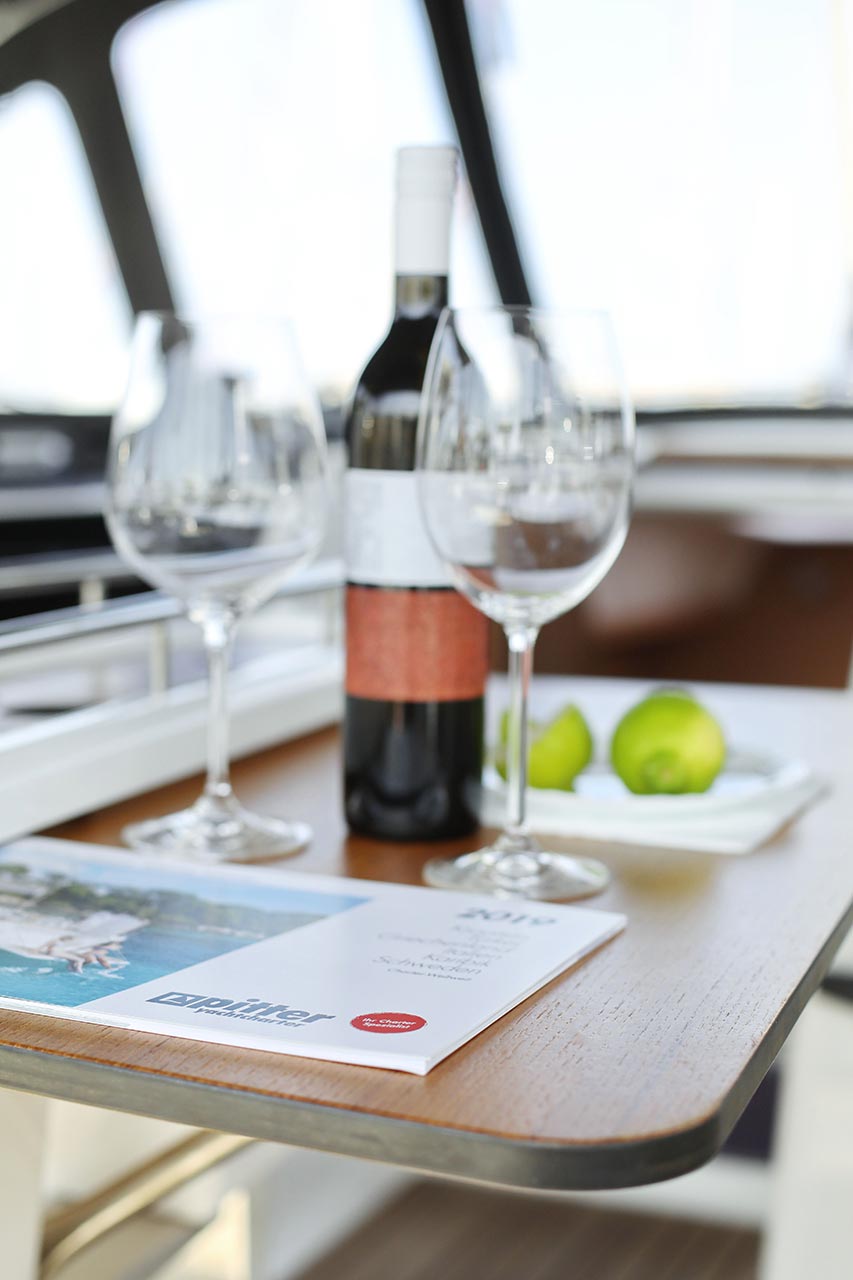 | Inside | Borduhr, Dusche, Heizung, Kühlschrank, Ladegerät, Luftpumpe für Beiboot, Pantryausstattung, Radio mit CD und MP3, Warmwasser |