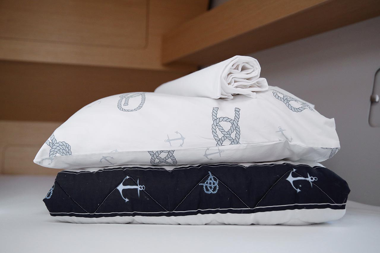 | Safety | AIS Empfänger, Automatikwesten, Autopilot, Blitzboje, Bootsmannstuhl, Bordapotheke, Bordwerkzeug, Bugstrahlruder, Feuerlöscher, Lifebelts, Motor-Ersatzteile, Nebelhorn, Notsignale, Radarreflektor, Reparaturset für Beiboot, Rettungsinsel, Suchscheinwerfer, Taschenlampe, UKW-Funk, Zweitanker |