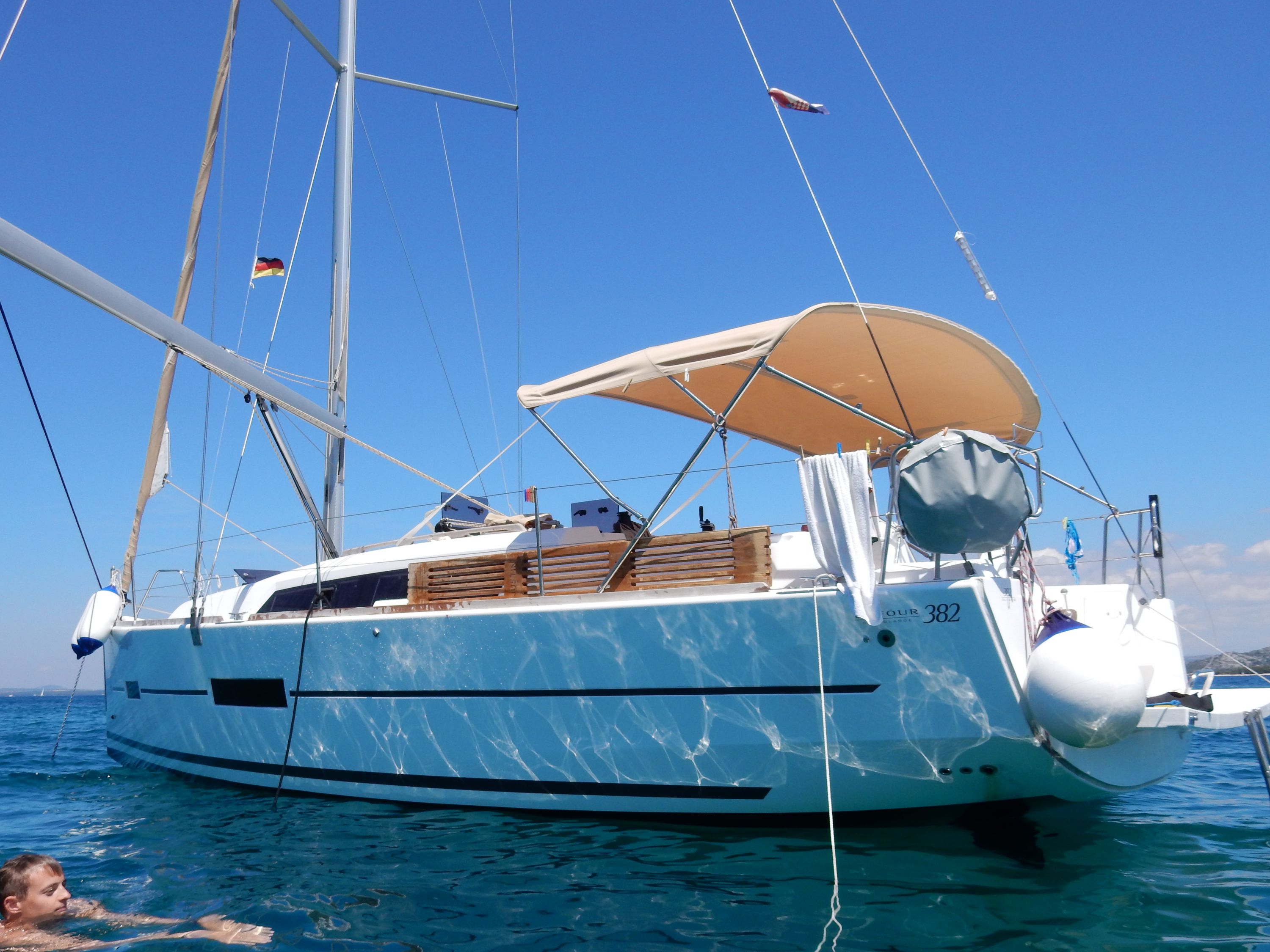 Für eine sechs Jahre alte Yacht was der Zustand sehr heruntergekommen. Dass viele Chartergäste die Boote nicht pfleglich behandeln ist leider Tatsache. Dass aber die Schäden so offensichtlich nicht repariert werden ist sehr schade. Es könnte ein richtig schönes Boot sein. Glücklicherweise waren alle für das Segeln und Fahren relevanten Einrichtungen technisch sehr gut in Ordnung.