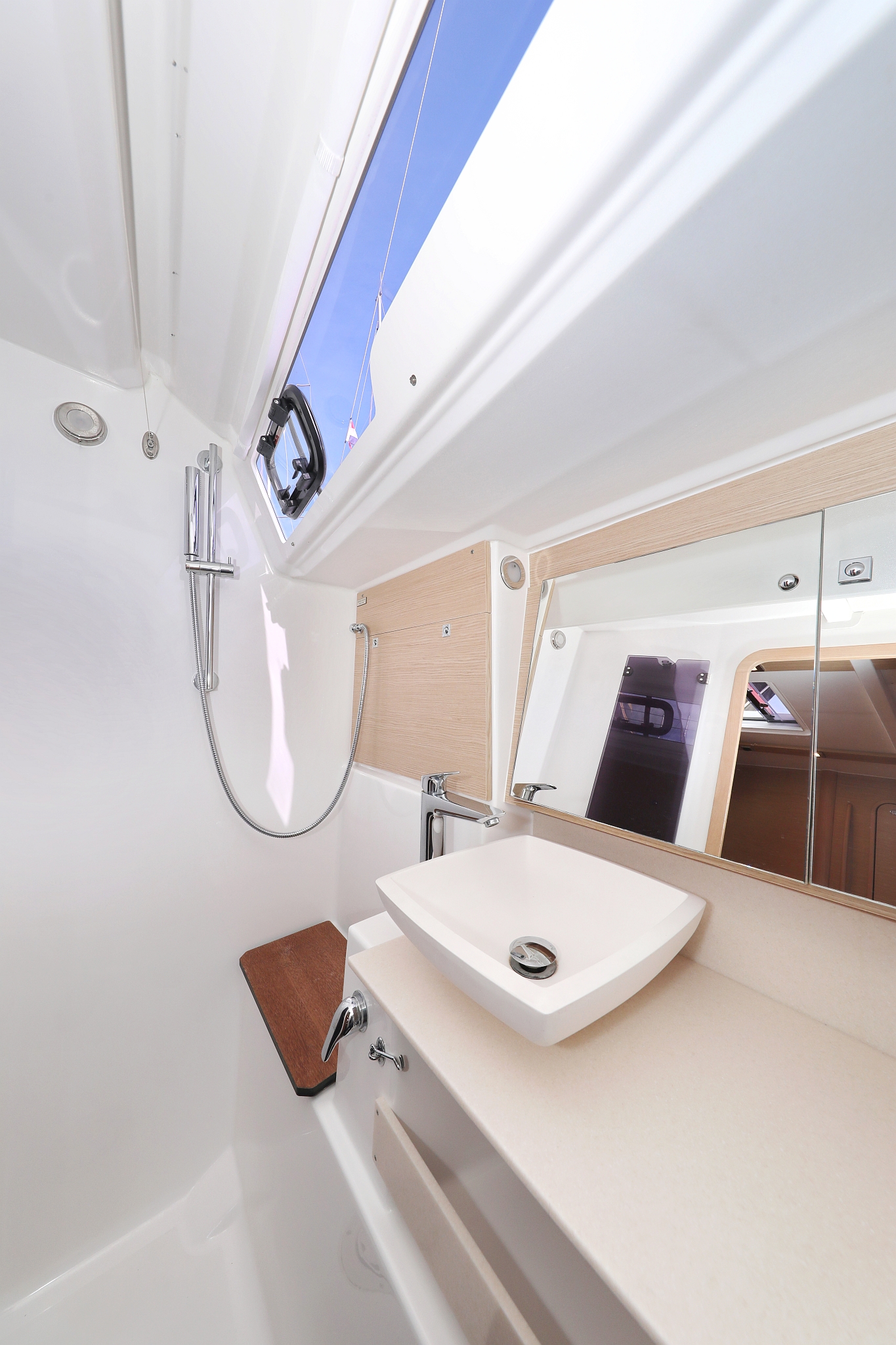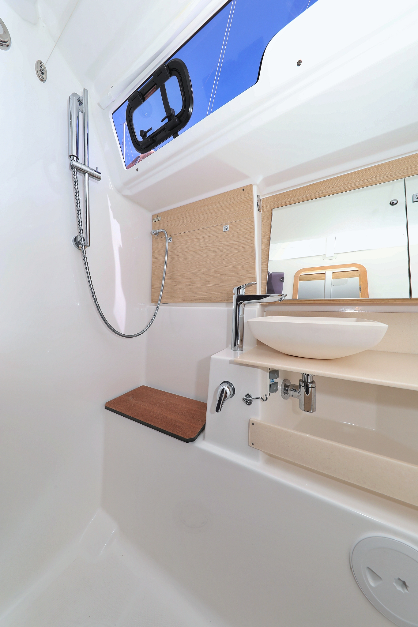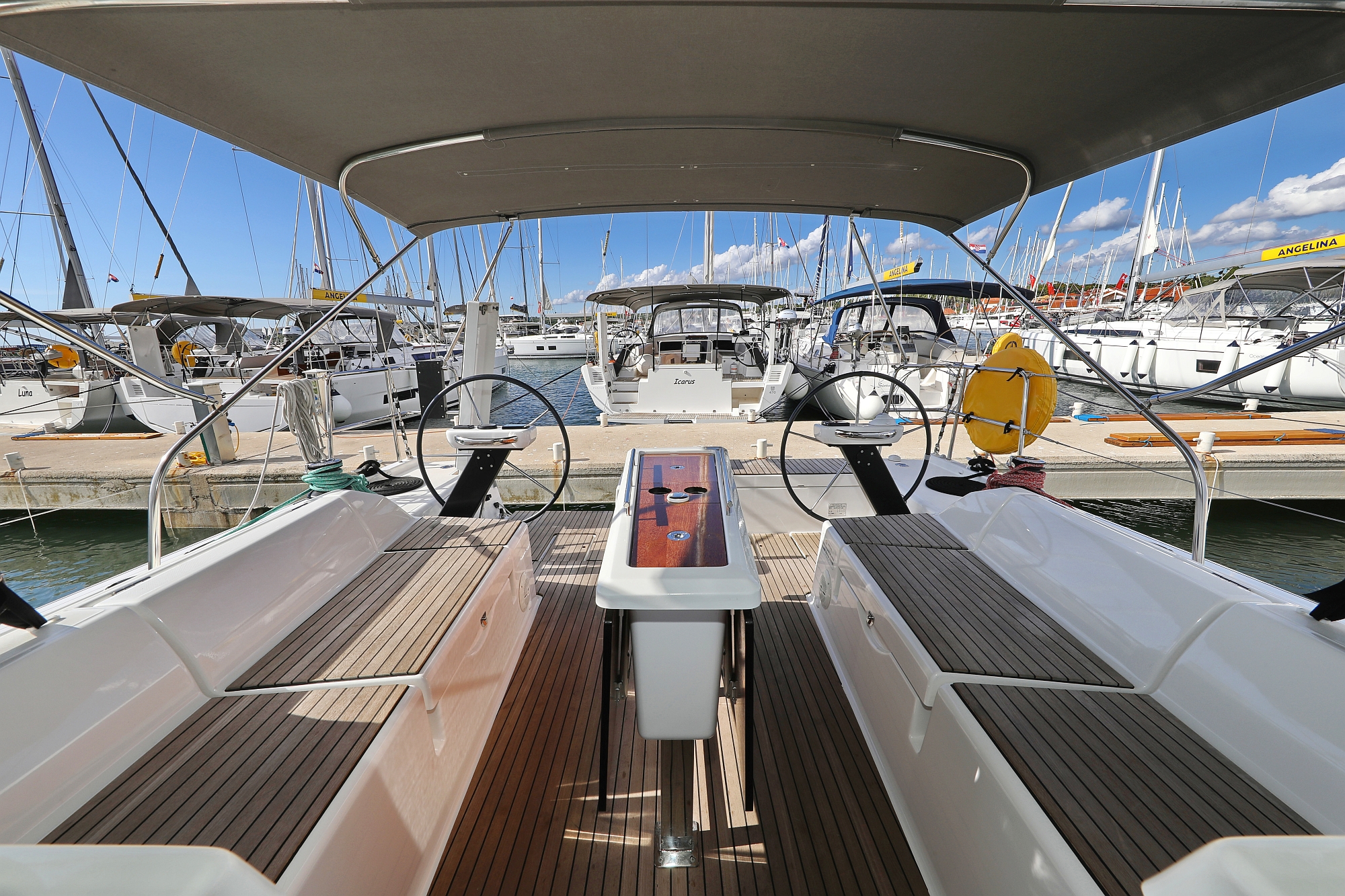 | Outside | 220 V-Landanschluss, Anker mit Kette, Badeplattform, Biminitop, Bootshaken, Cockpitdusche, Cockpitlautsprecher, Cockpitpolster, Cockpittisch, elektr. Ankerwinsch, Fender, Festmacherleinen, Gangway, Grill, Solaranlage, Sprayhood, Teak im Cockpit, Wasserschlauch, Winschen |