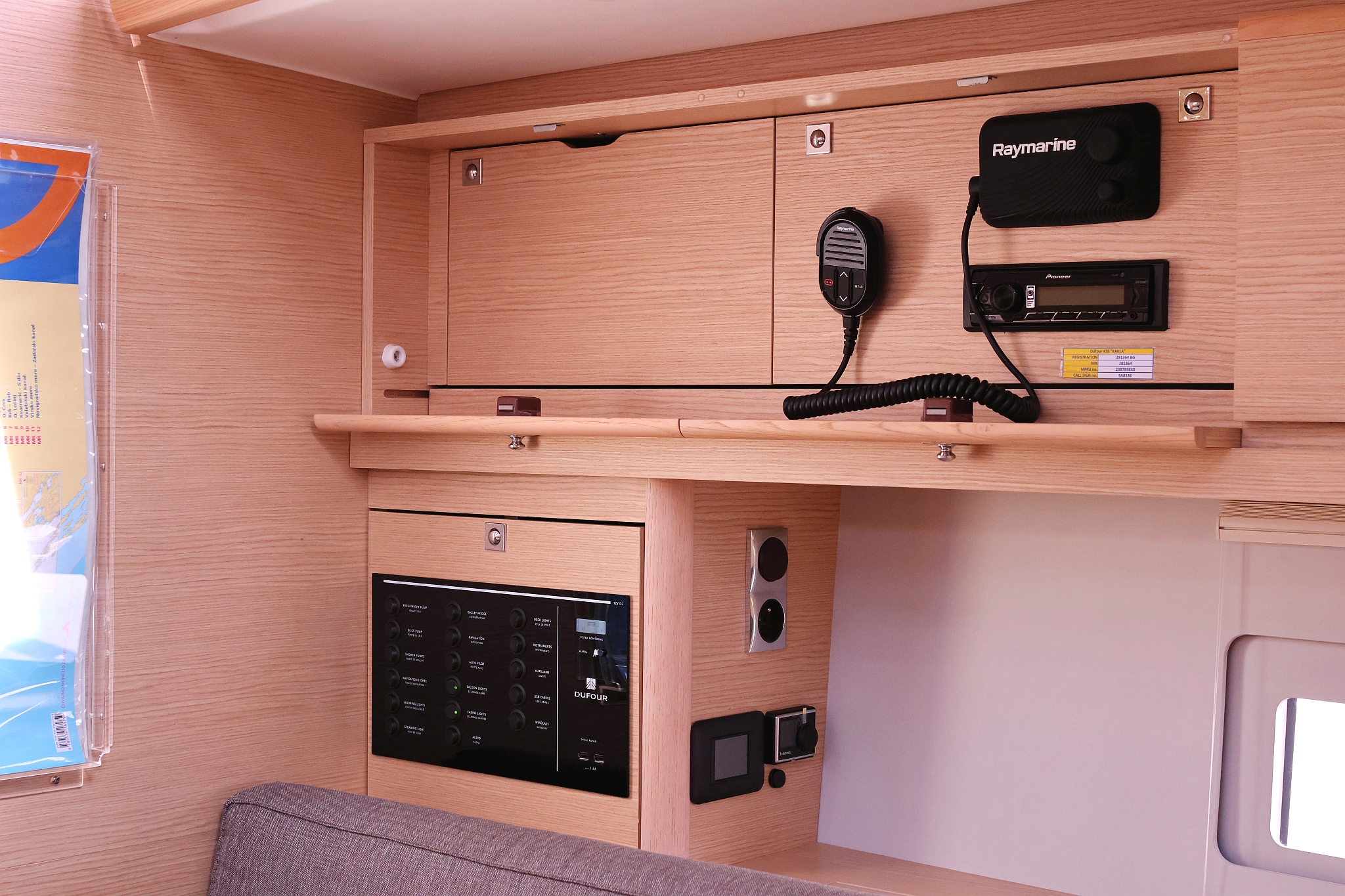| Safety | Autopilot, Bordapotheke, Bordwerkzeug, Bugstrahlruder, elektr. Bilgepumpe, Feststoffschwimmwesten, Feuerlöscher, Handbilgepumpe, Lifebelts, Nebelhorn, Notsignale, Radarreflektor, Rettungsinsel, Rettungskragen, Taschenlampe, UKW-Funk, Zweitanker |