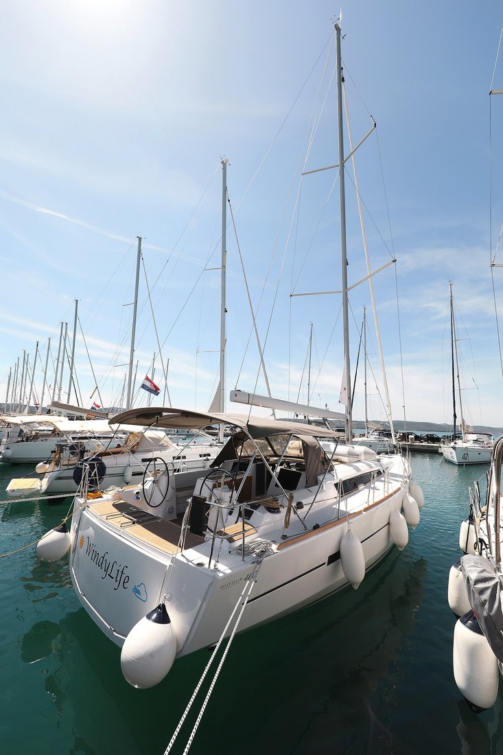 | Outside | 220 V-Landanschluss, Anker mit Kette, Badeplattform, Biminitop, Cockpitdusche, Cockpitkühlschrank, Cockpitlautsprecher, Cockpitpolster, Cockpittisch, elektr. Ankerwinsch, Fender, Festmacherleinen, Gas-Barbecue-Grill im Cockpit, Sprayhood, Teak im Cockpit, Treibanker, Wantenschneider, Windex |