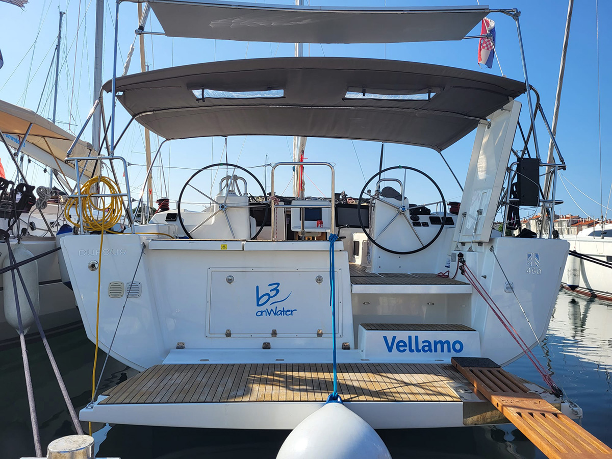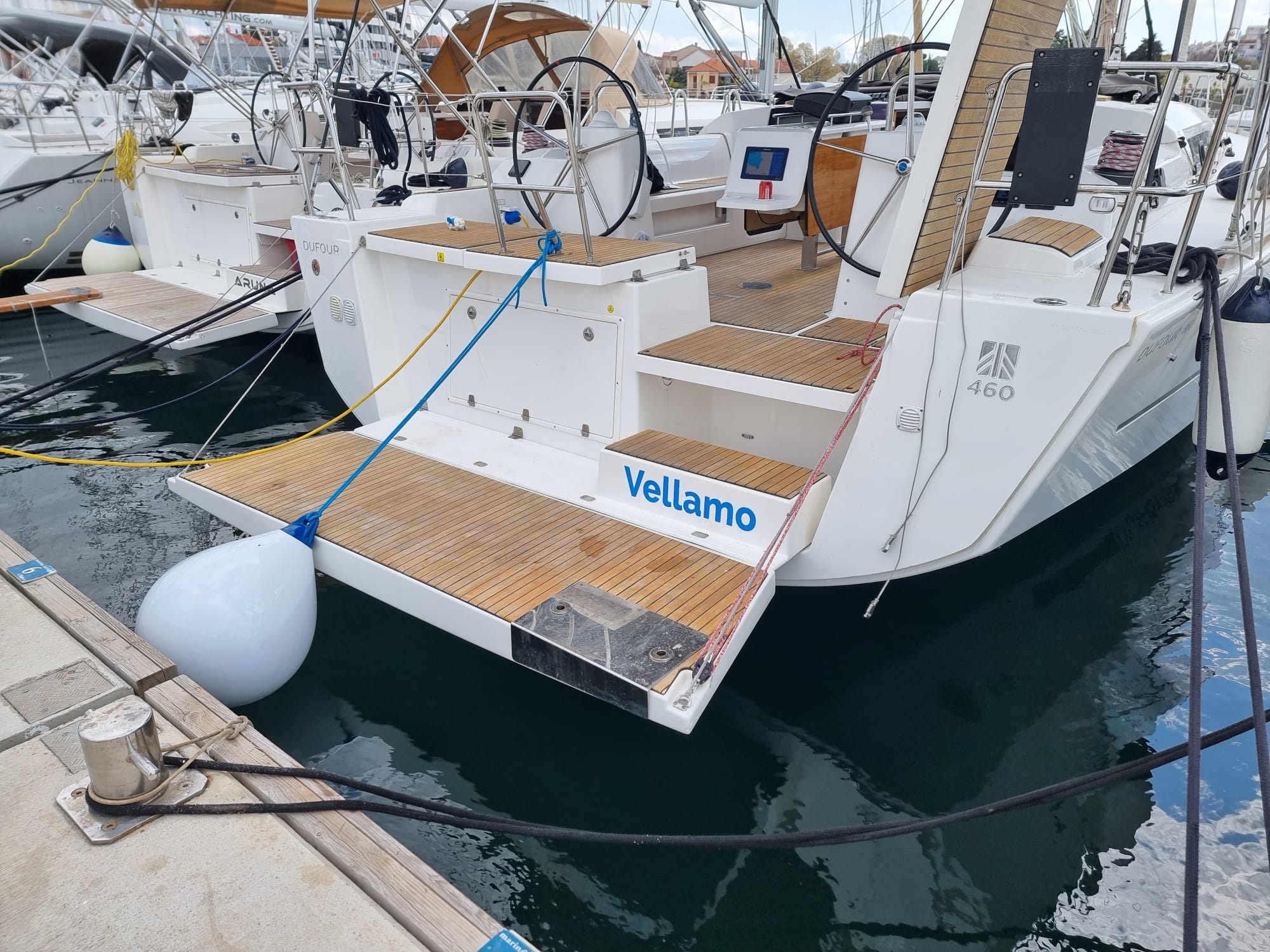 | Outside | Badeplattform, Biminitop, Bootshaken, Cockpitdusche, Cockpitlautsprecher, Cockpittisch, Delta-Anker, elektr. Ankerwinsch, Fender, Festmacherleinen, Gangway, Grill, Jambo Anker, Solaranlage, Sprayhood, Teak im Cockpit, Wasserschlauch, Winschen |