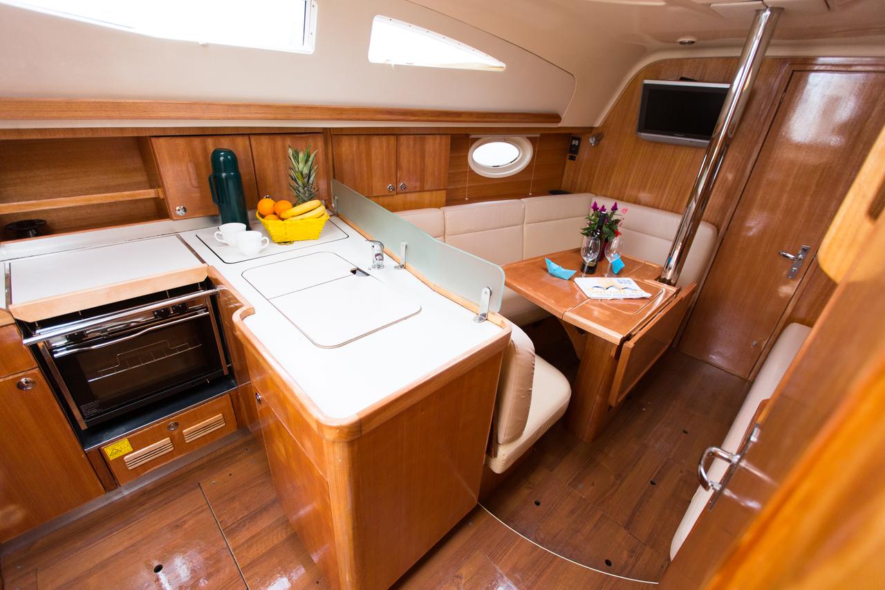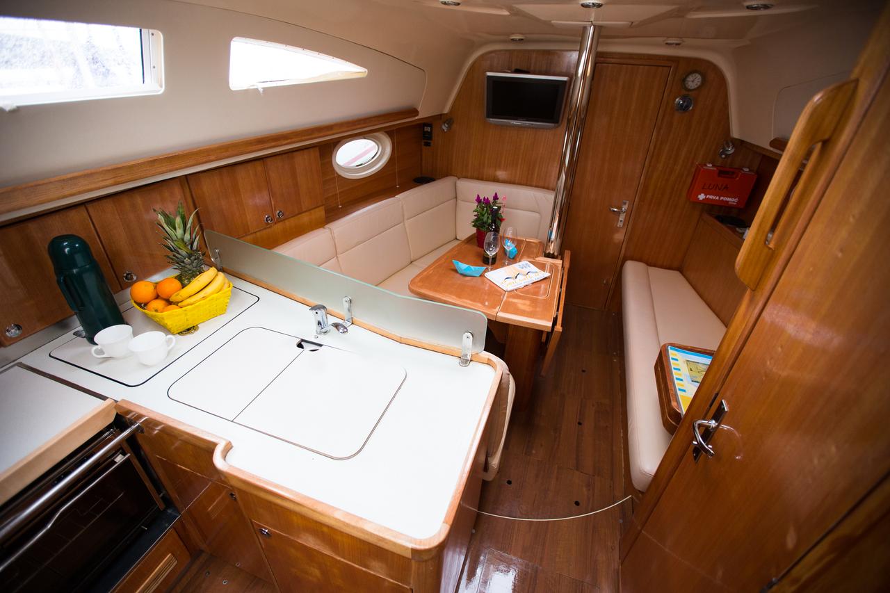 | Outside | Biminitop, Cockpitdusche, Cockpitlautsprecher, Cockpitpolster, Cockpittisch, elektr. Ankerwinsch, Gangway, Sprayhood |