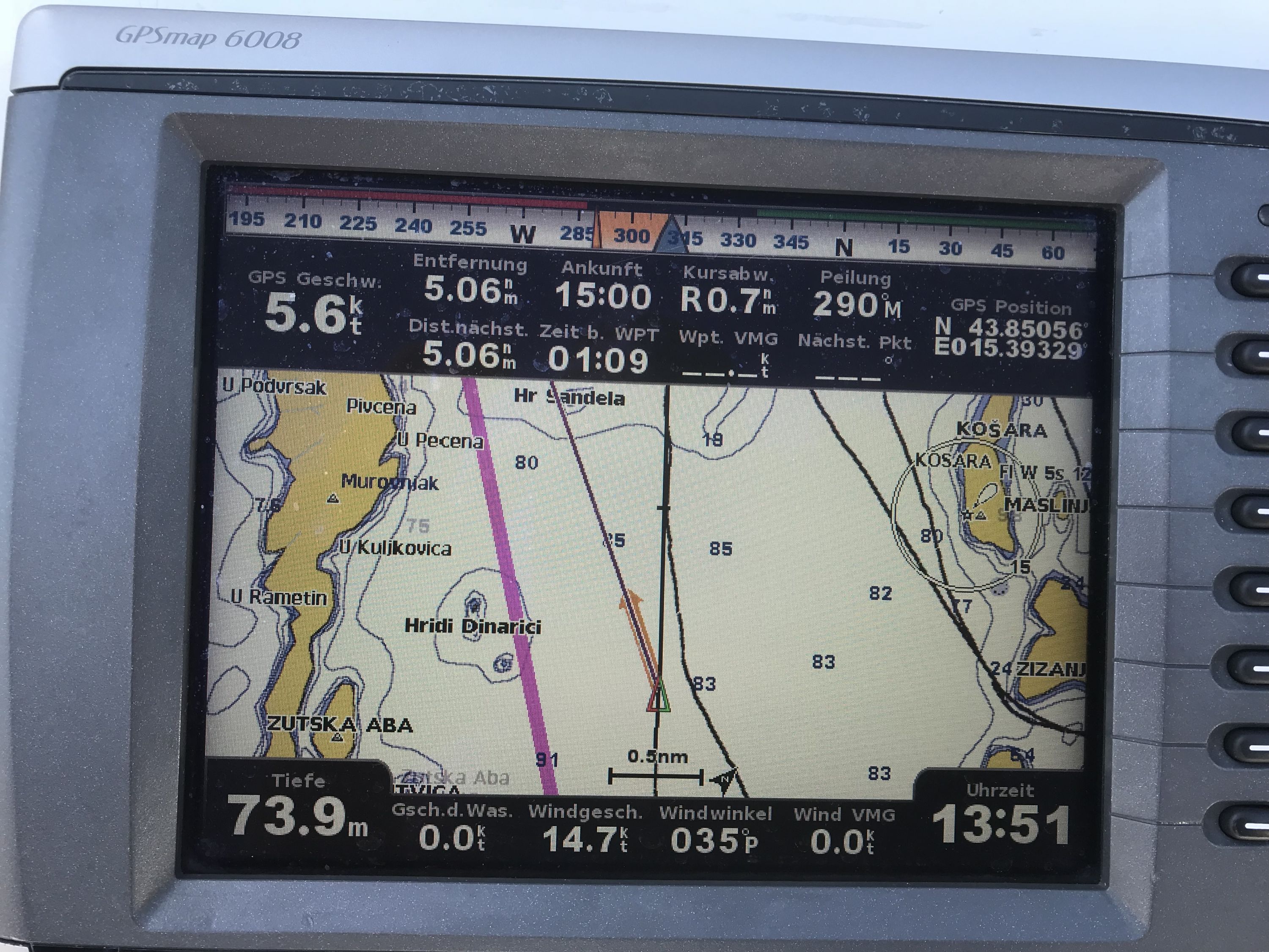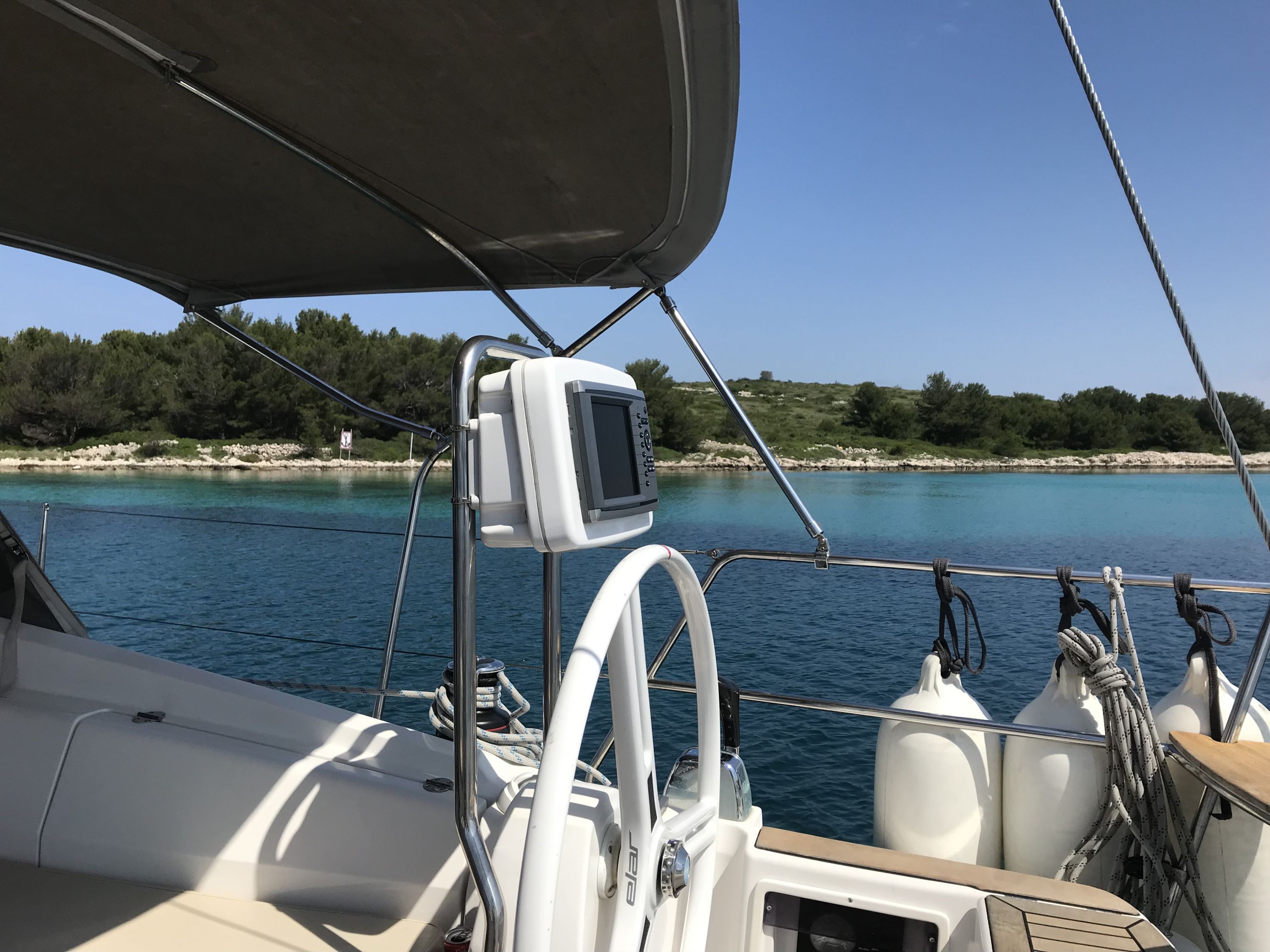 | Navigation | Echolot, GPS mit Kartenplotter im Cockpit, Seekarten, Sumlog, Windmesser |