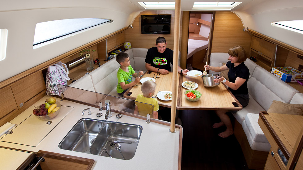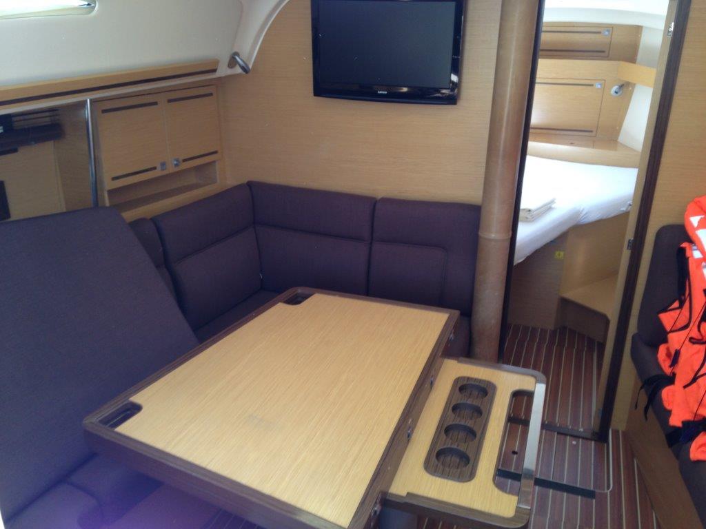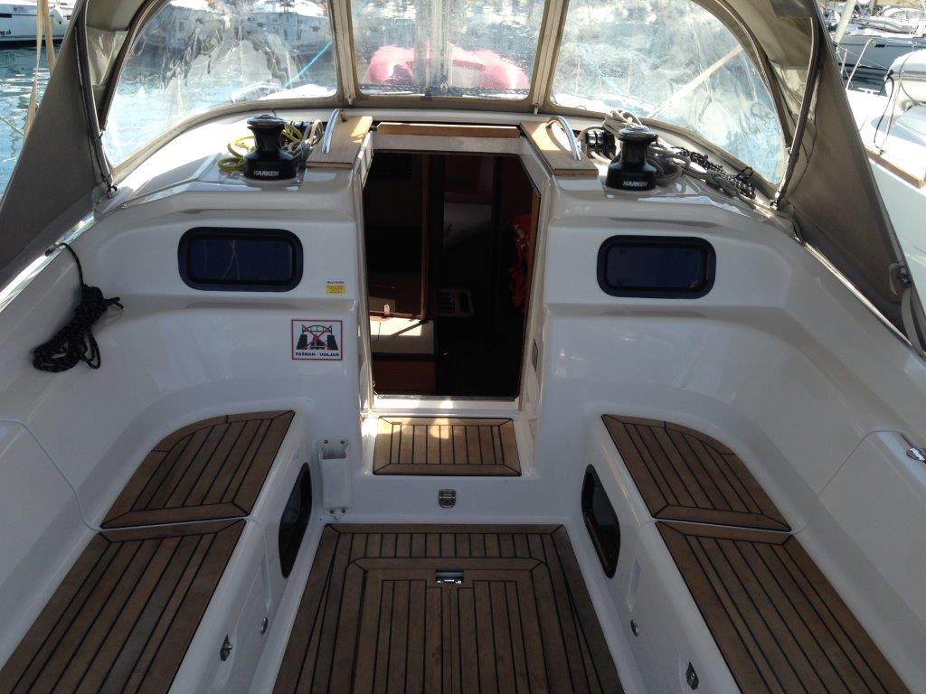 | Outside | Badeplattform, Biminitop, Cockpitdusche, Cockpitlautsprecher, Cockpitpolster, Cockpittisch, Cockpittisch (klappbar), elektr. Ankerwinsch, Sprayhood |