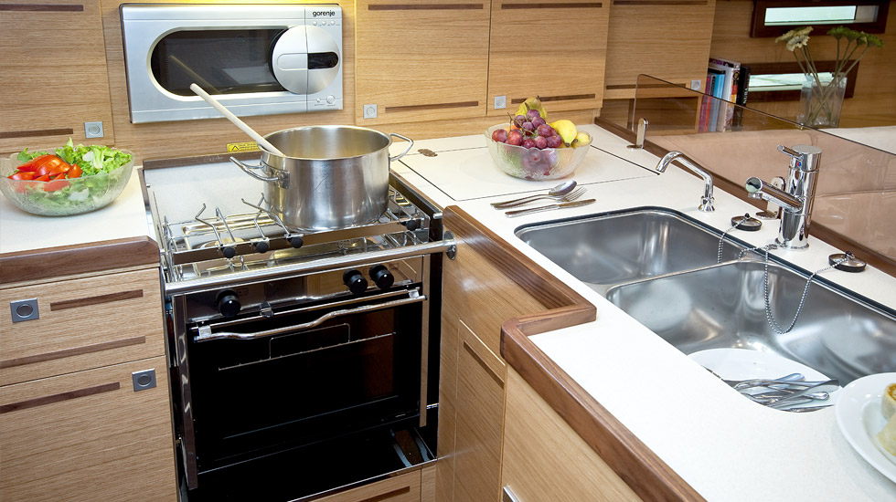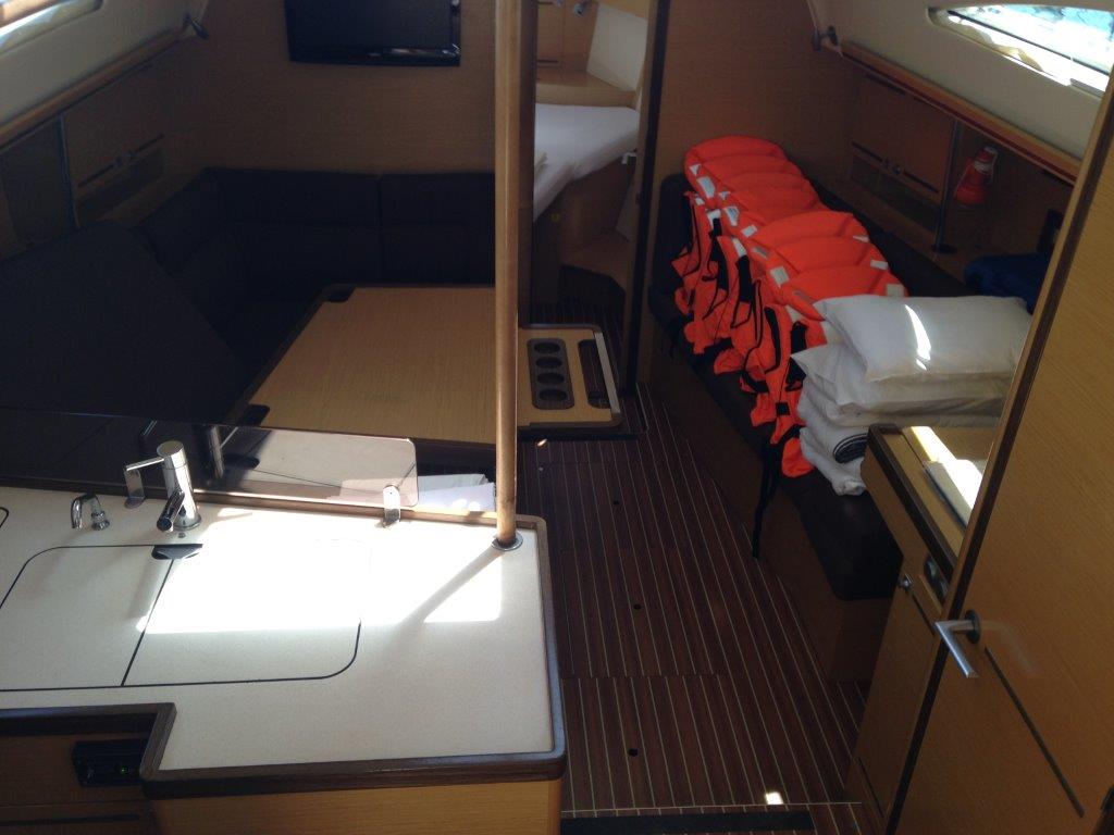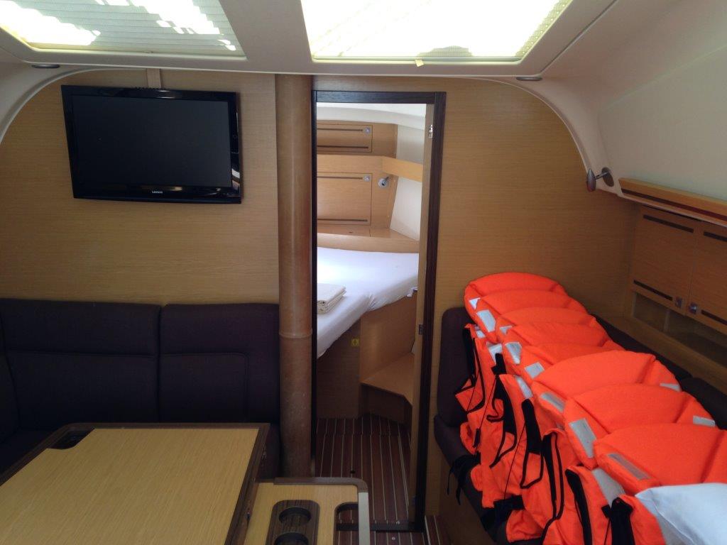 | Safety | Autopilot, Bugstrahlruder, elektr. Bilgepumpe, Feststoffschwimmwesten, Flaggen, Lifebelts, Notsignale, UKW-Funk, Zweitanker |