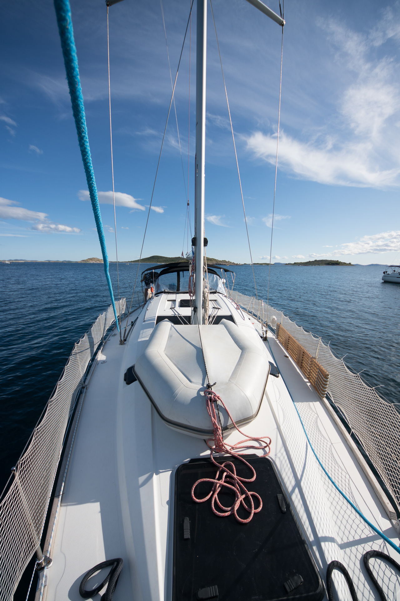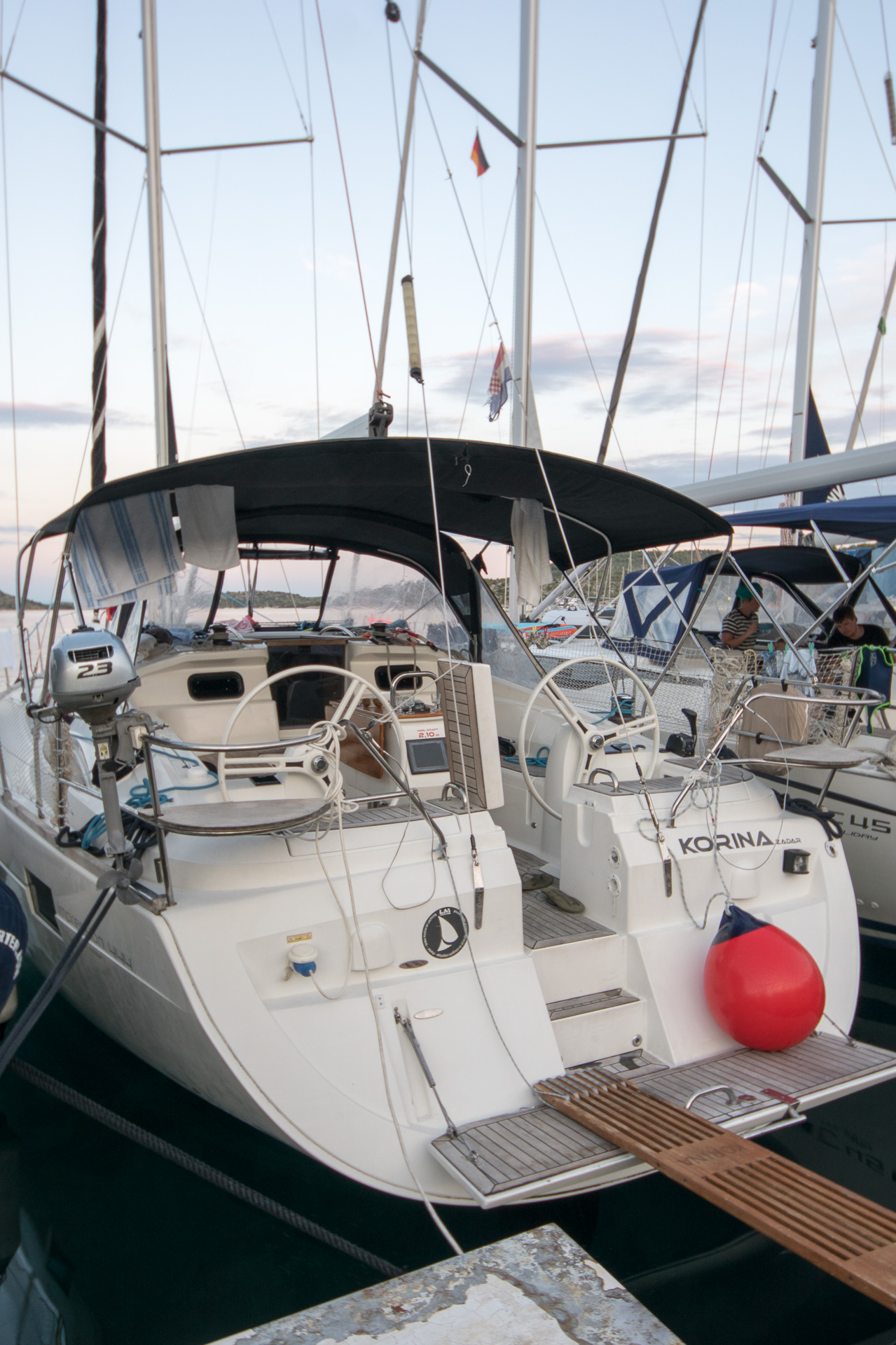 Zustand der Yacht dem Alter entsprechend mit ein paar Abstrichen. Die Tankanzeige für Frischwasser zeigte immer voll an, die Hälfte aller Verschlüsse (Schubladen, Schränke ...) konnten nicht verriegelt werden --> Türen schlagen beim Segeln. Der Kühlschrank kühlte nicht richtig. Das Dingi ist zu klein (zugelassen für 2 Personen!).