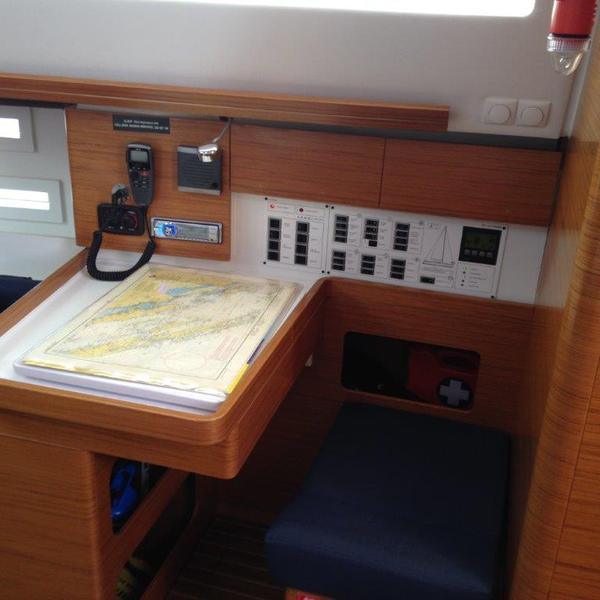 | Navigation | GPS mit Kartenplotter im Cockpit, Seekarten, Tridata (Log, Echolot, Windm.), Windmesser |