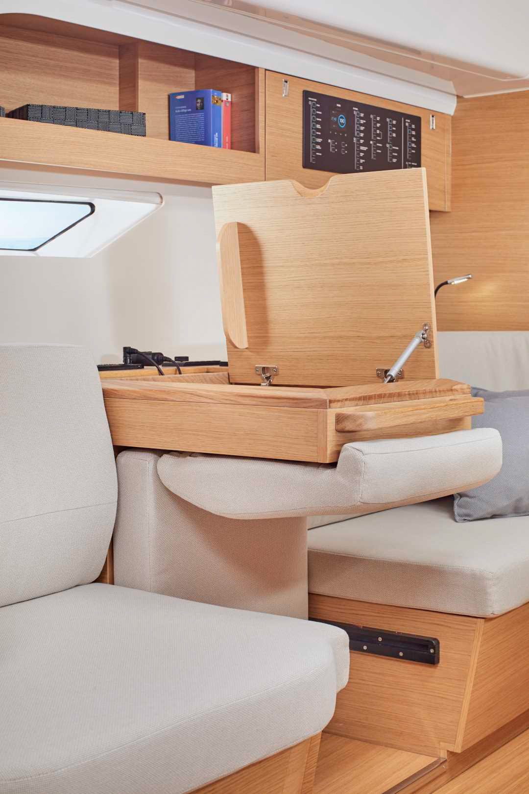 | Outside | 12 V-Anschluss, 220 V-Landanschluss, Anker mit Kette, Badeplattform, Biminitop, Bugspriet, Cockpitdusche, Cockpitlautsprecher, Cockpitpolster, Cockpittisch, Deckbeleuchtung, elektr. Ankerwinsch, Fallwinschen, Faltpropeller, Fender, Festmacherleinen, Kugelfender, Sprayhood, Windex, Winschen |