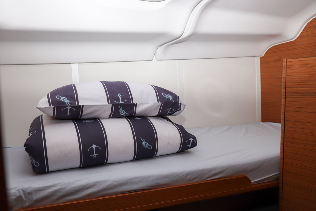 | Safety | Autopilot, Bootsmannstuhl, Bordapotheke, Bugstrahlruder, Feststoffschwimmwesten, Feuerlöscher, Flaggen, Lifebelts, Nebelhorn, Notpinne, Radarreflektor, Rettungsinsel, Rettungskragen, Taschenlampe, UKW-Funk, UKW-Funk m. DSC, Zweitanker |