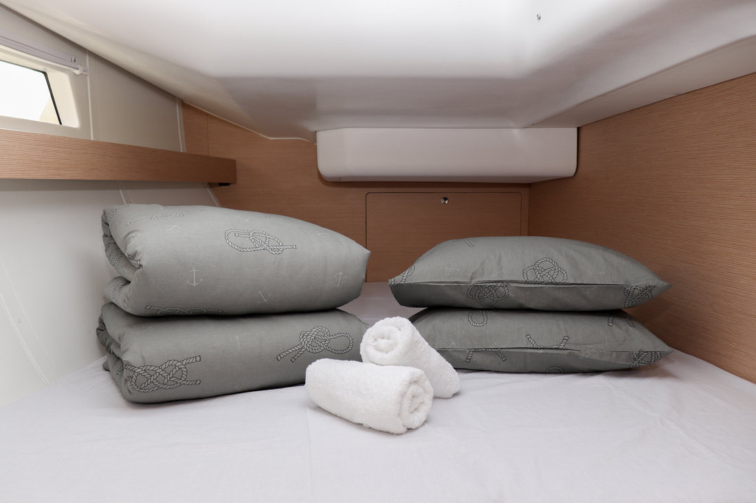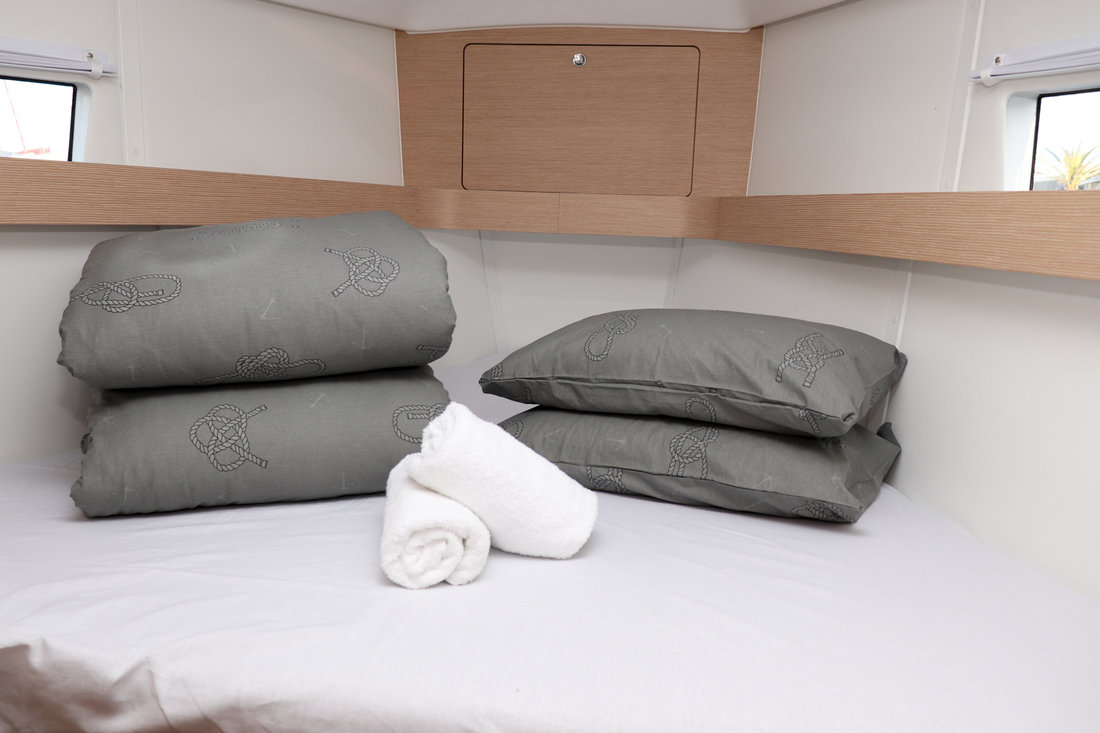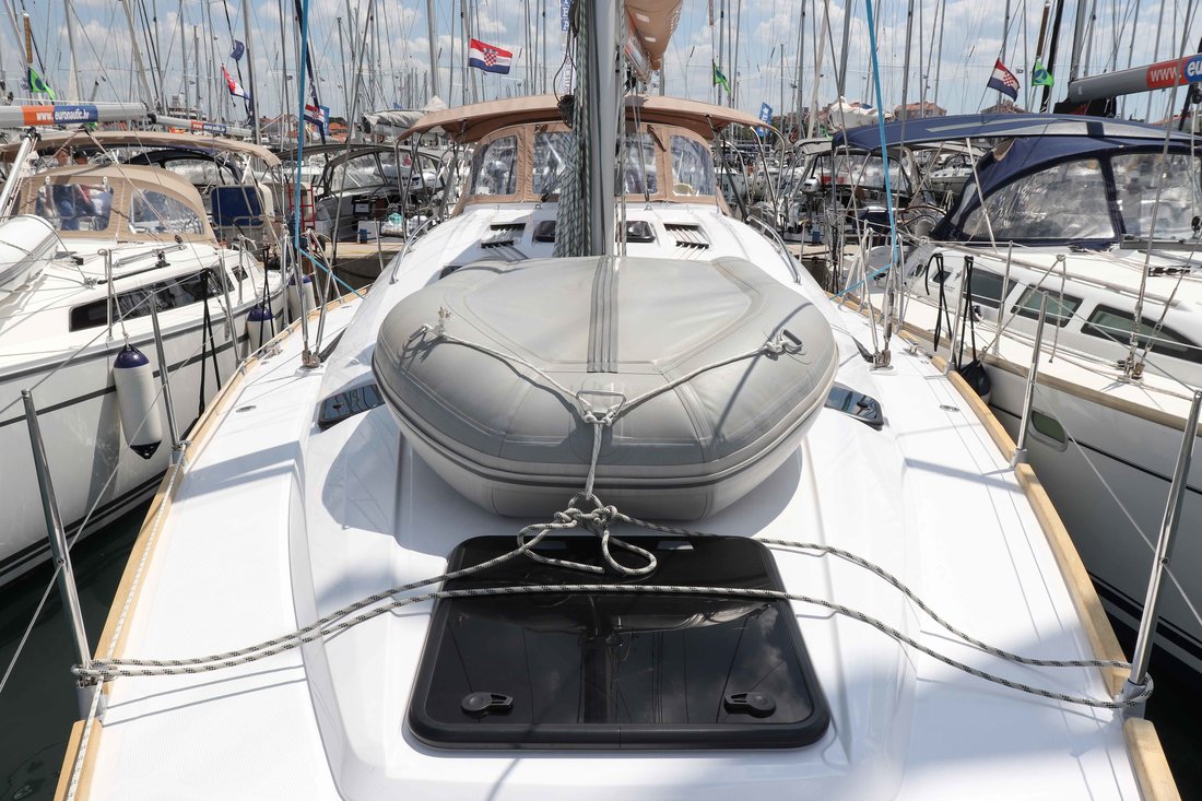 | Safety | Autopilot, Bootsmannstuhl, Bordapotheke, Bugstrahlruder, Feststoffschwimmwesten, Feuerlöscher, Flaggen, Lifebelts, Nebelhorn, Notpinne, Radarreflektor, Rettungsinsel, Taschenlampe, UKW-Funk, UKW-Funk m. DSC, Zweitanker |